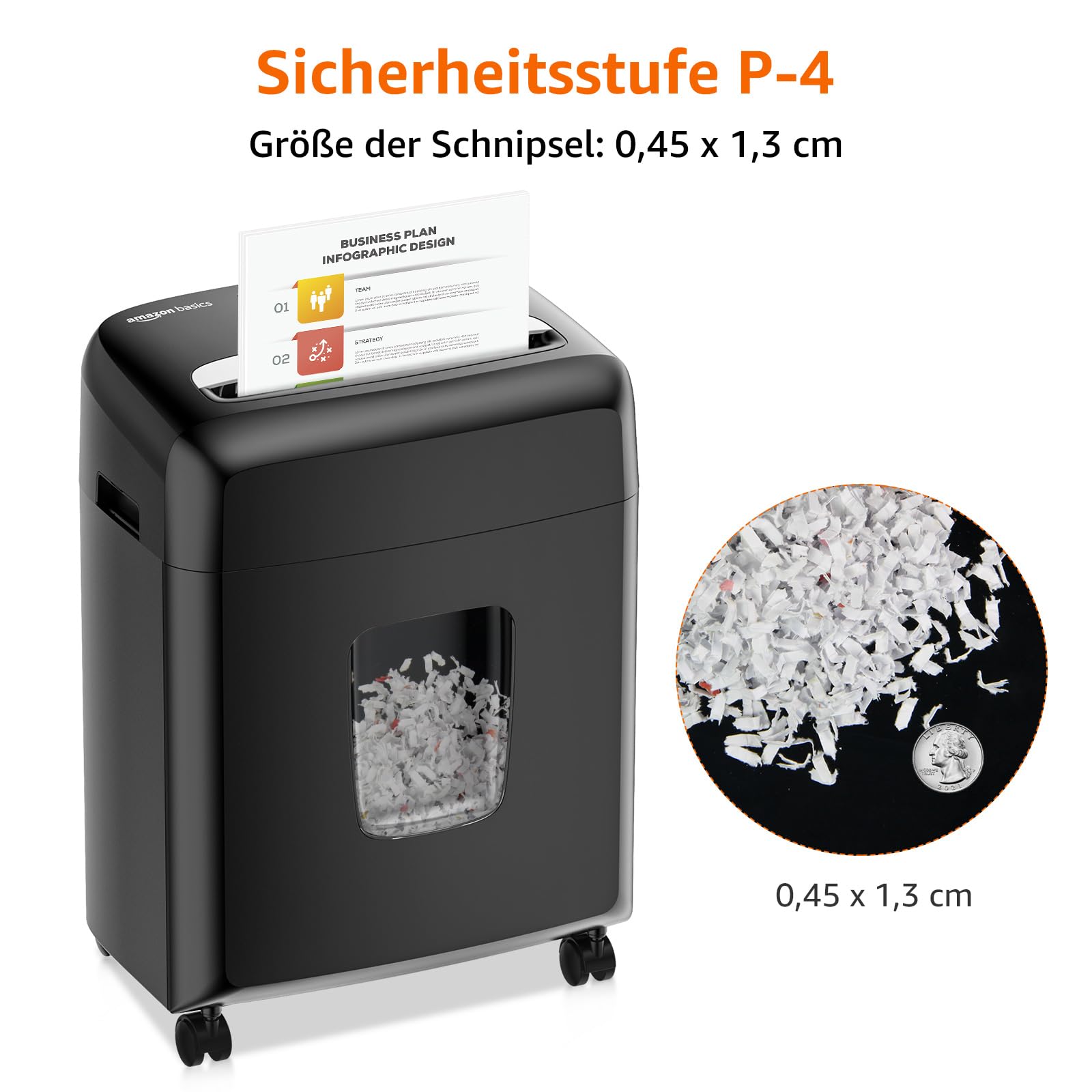- Hohe Sicherheitsstufe: Zerkleinert Papier in winzige 4 x 12 mm Mikroschnipsel, was der Sicherheitsstufe P-4 entspricht und Ihre Daten optimal schützt.