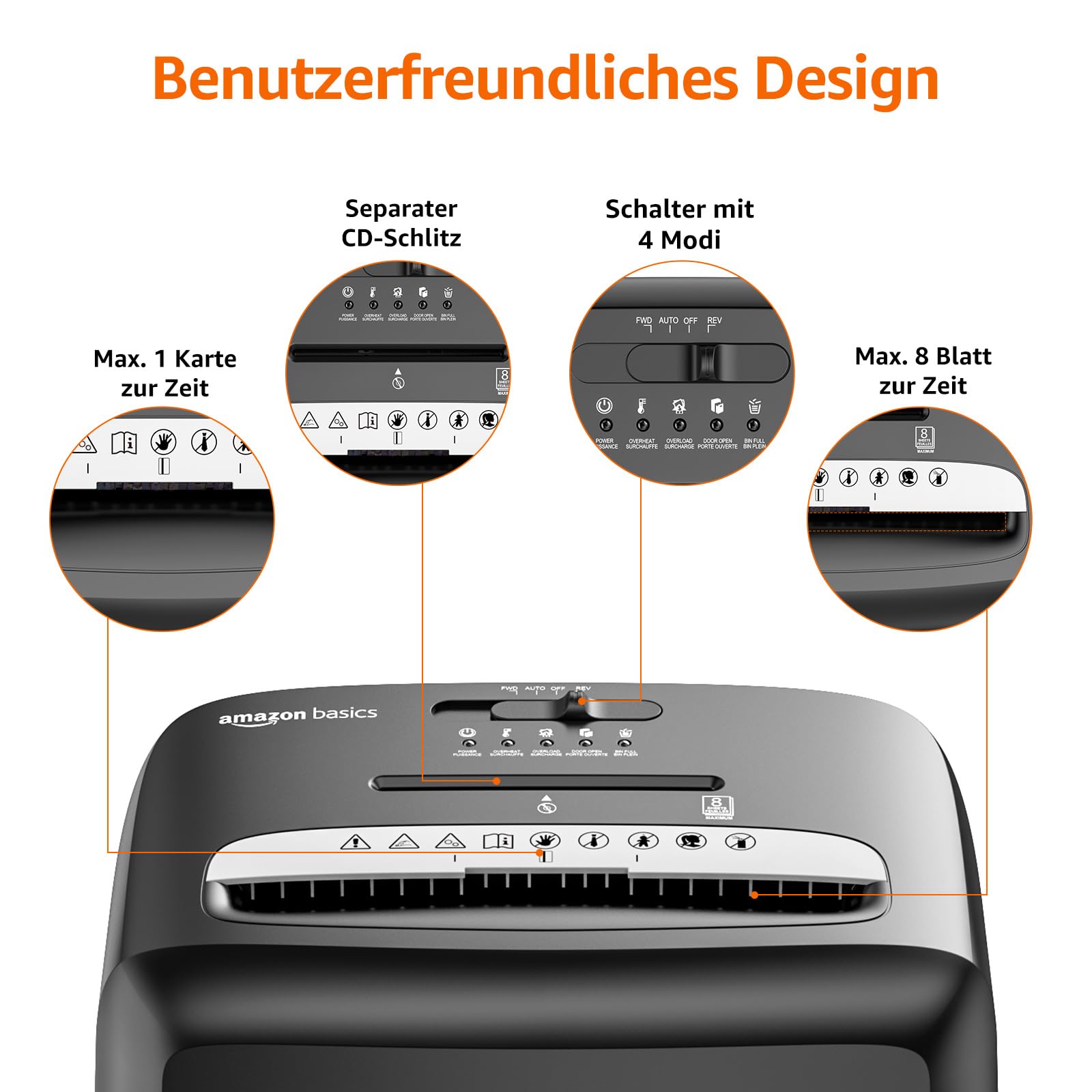 - Vielseitige Anwendung: Ein separater Einzug vernichtet zudem zuverlässig CDs, DVDs und Plastikkarten (ausser solche aus Metall).