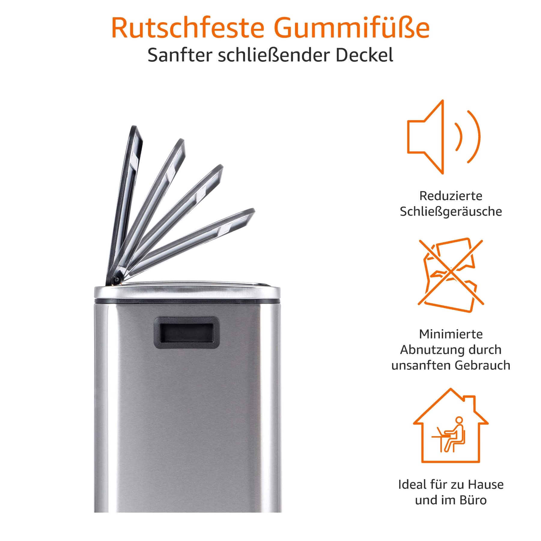 Amazon Basics 30L Rechteckig Doppel-Mülleimer Pedal – Edelstahl Silber
