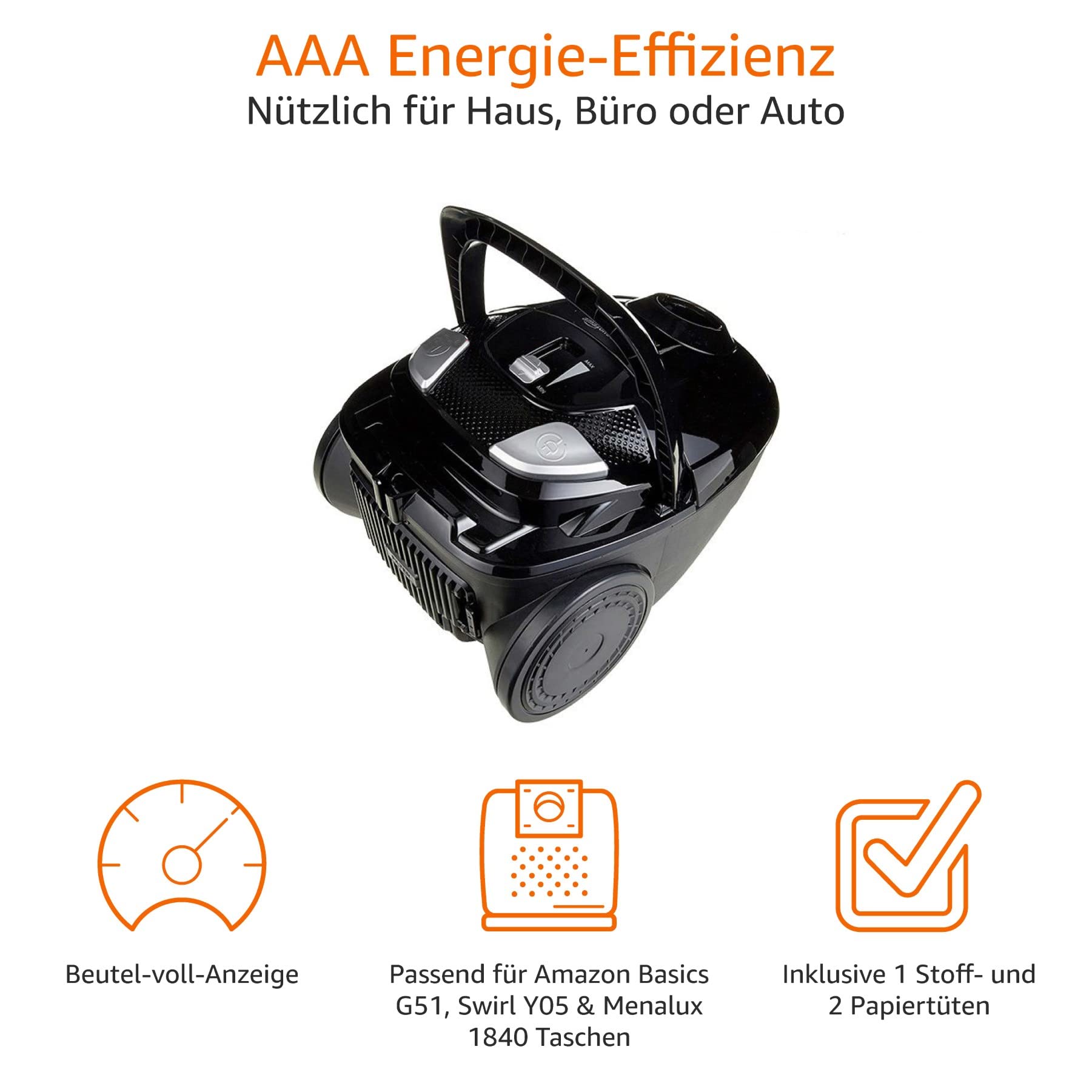 Kompatibilität Beutel: Das Gerät ist mit den Staubsaugerbeuteln Amazon Basics G51, Swirl Y05, Menalux 1840 und anderen passenden Modellen kompatibel.