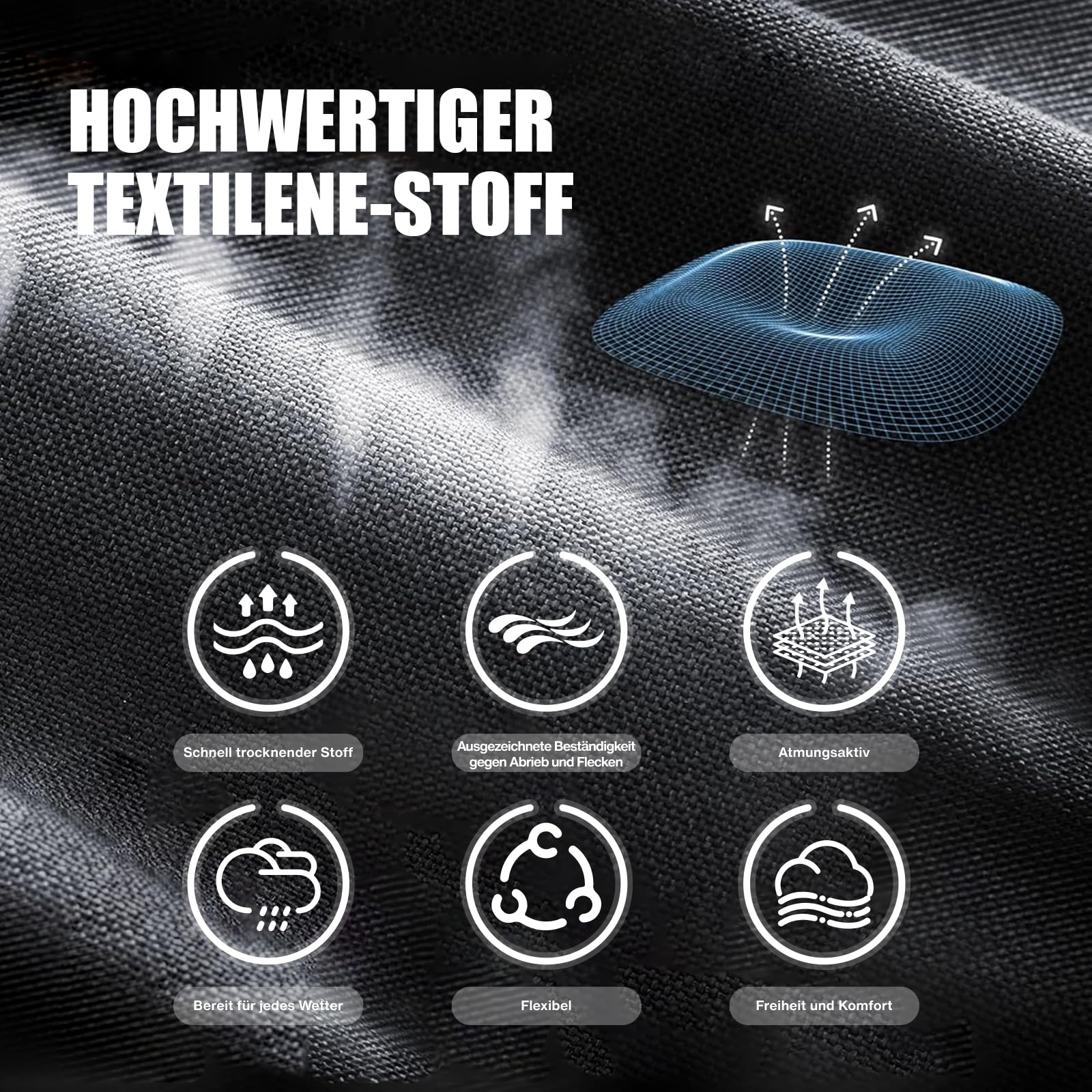 - Atmungsaktive Liegefläche: Das Kunstfasergewebe ist luftdurchlässig und verhindert unangenehmes Schwitzen. Zudem ist es widerstandsfähig, UV-beständig und feuchtigkeitsresistent.