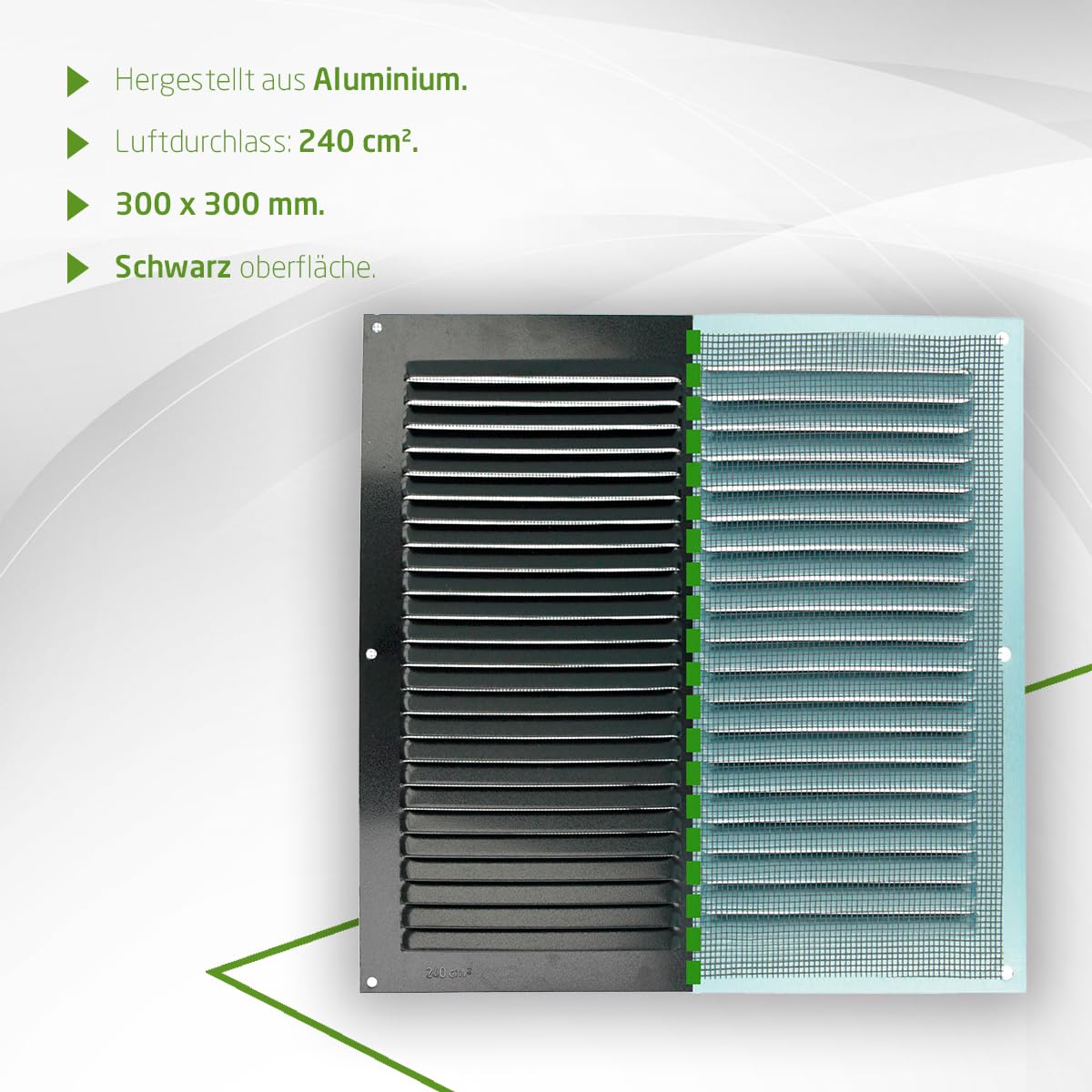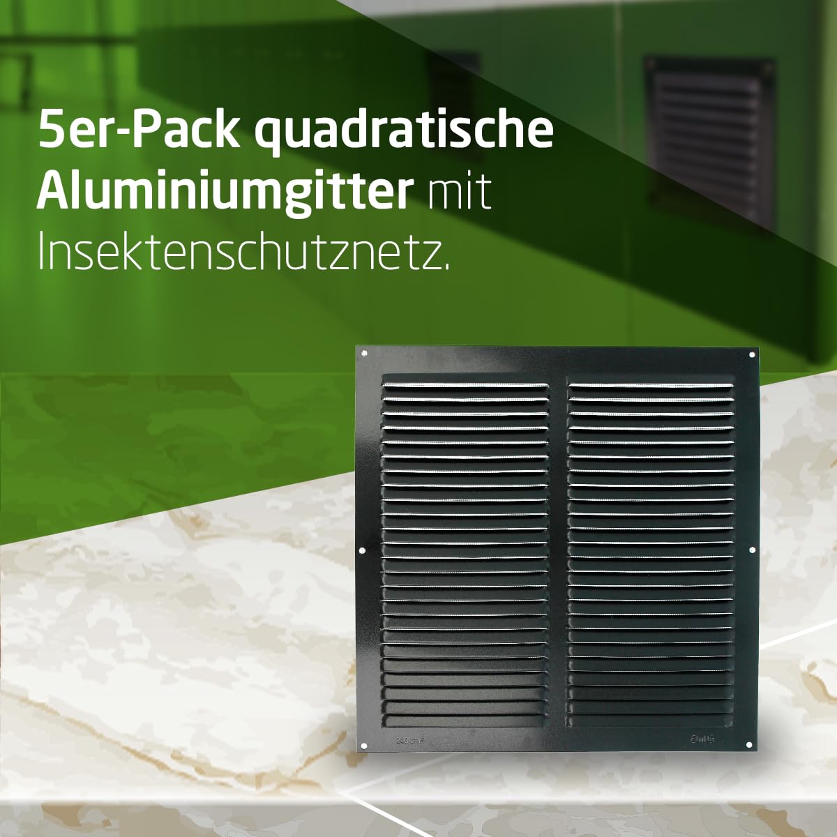 Amig Alu Lüftungsgitter Insektenschutz 300x300mm Schwarz 5er-Set