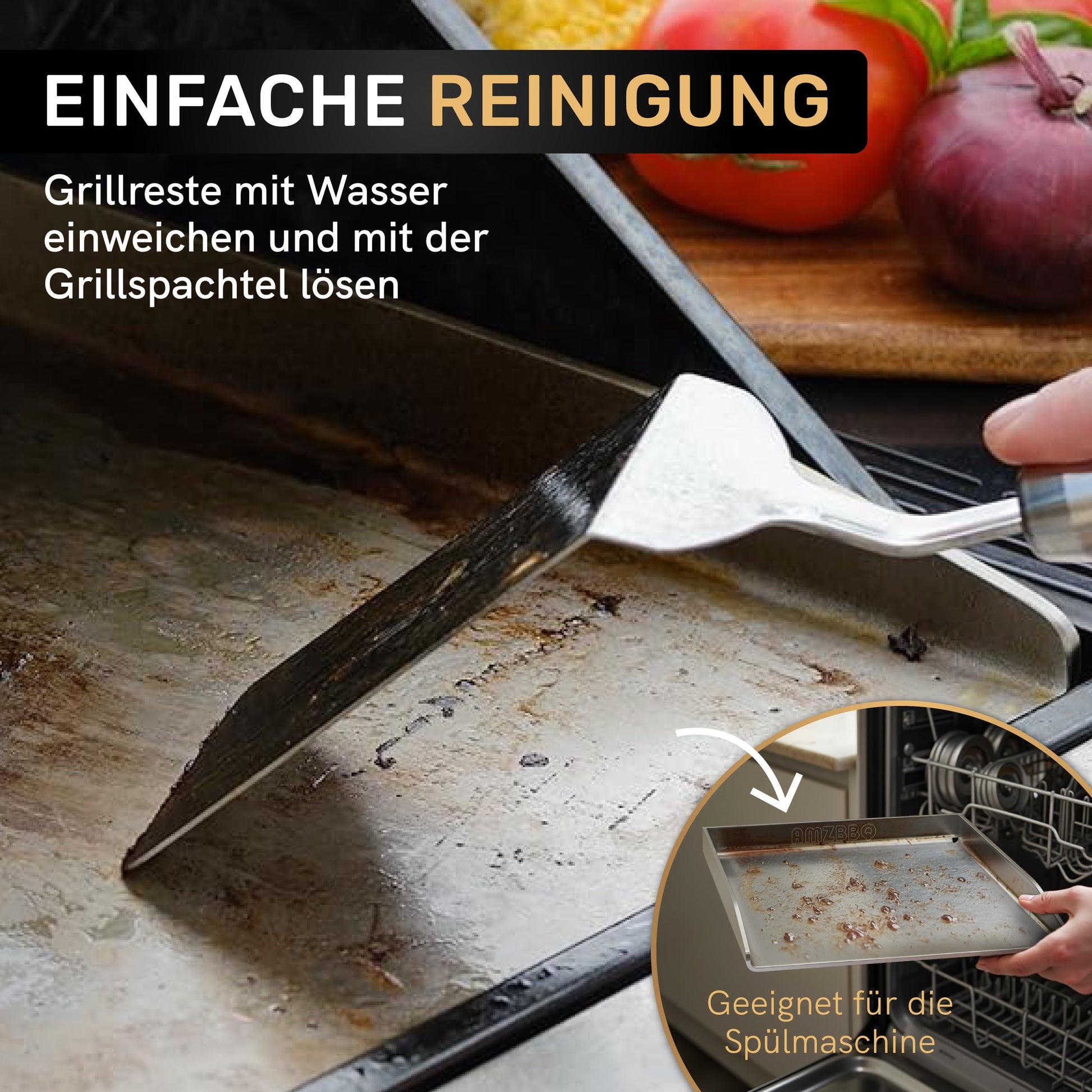 - Inklusive Zubehör: Ein passender Grillspachtel aus Edelstahl ist im Lieferumfang enthalten.