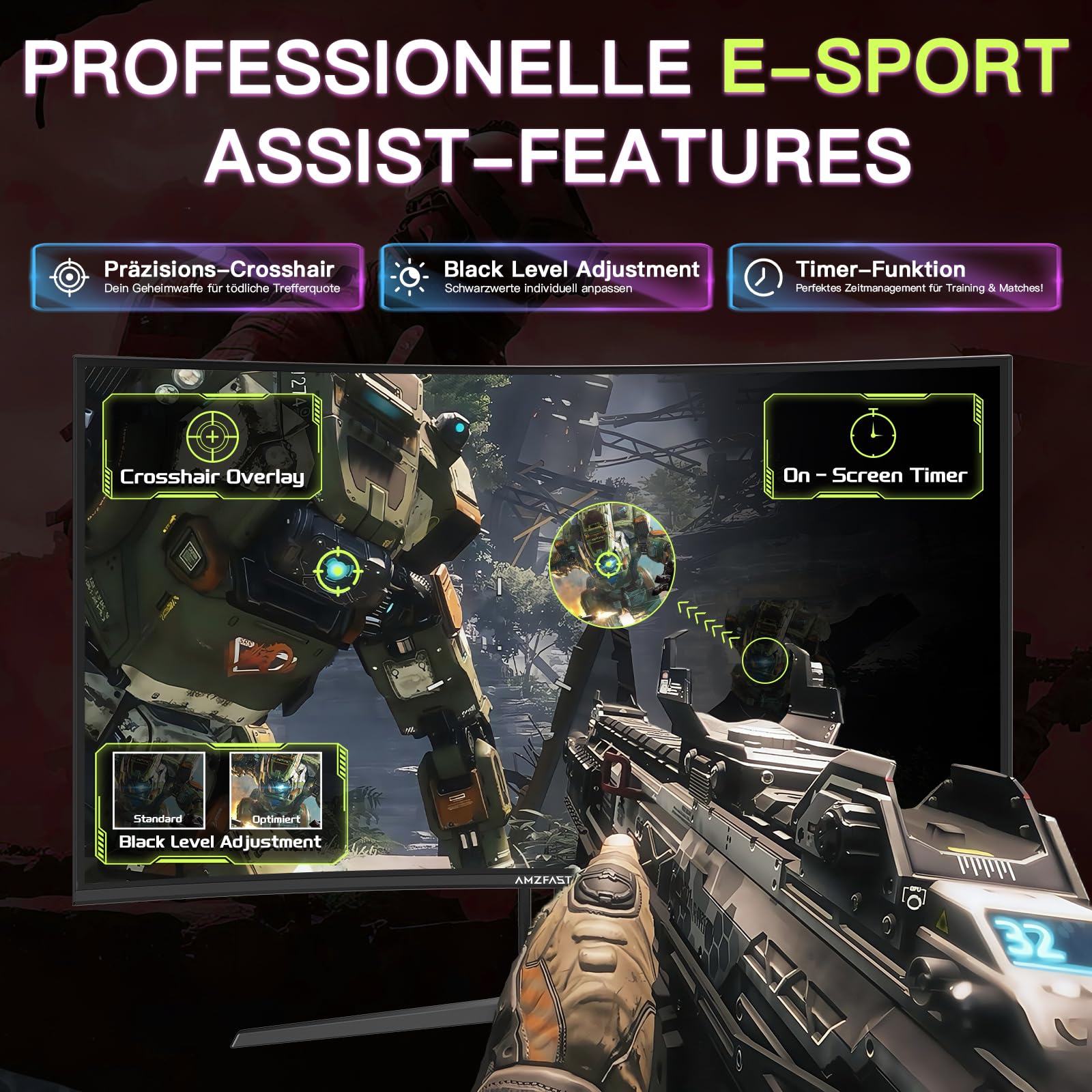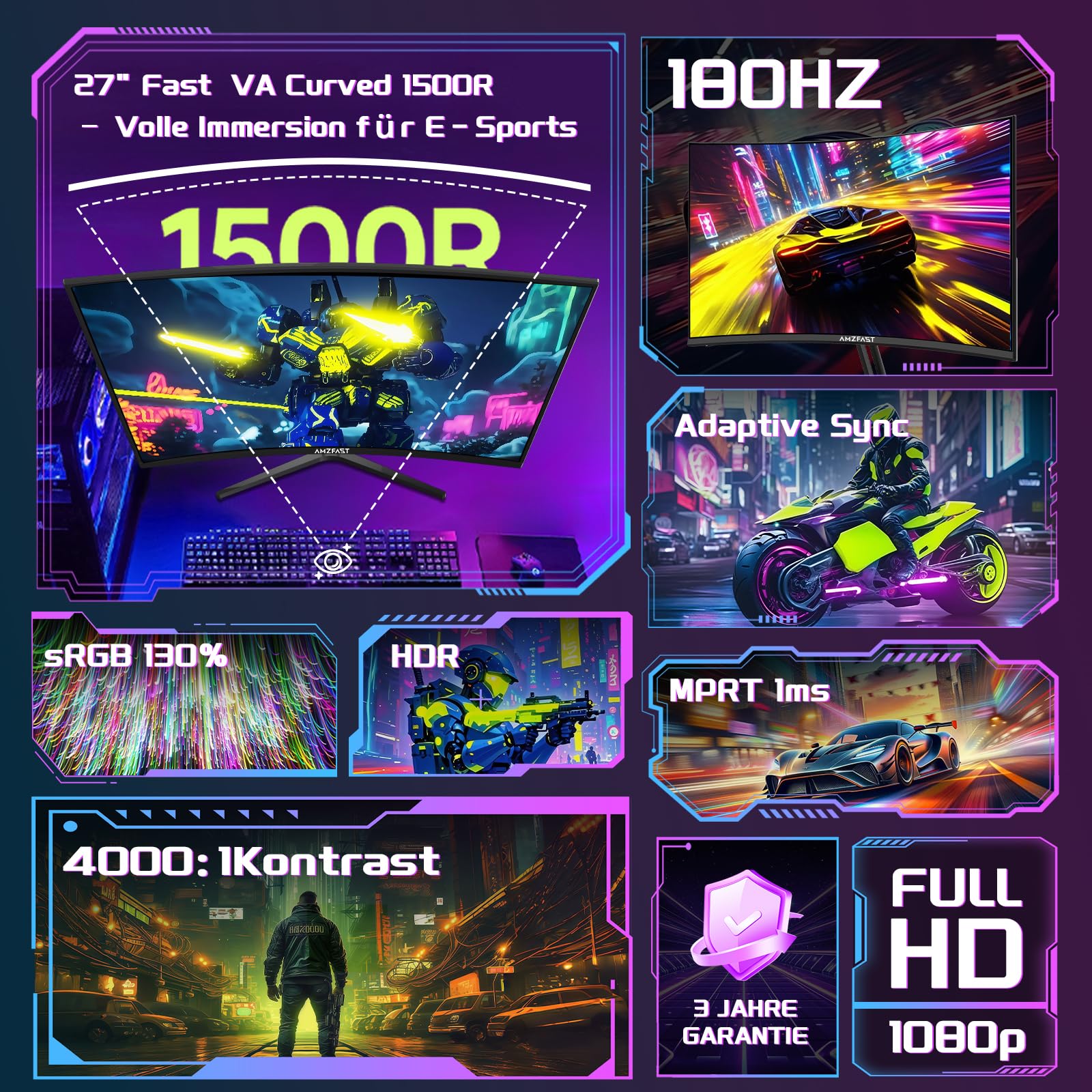Amzfast AMZG27C1 Curved Gaming Monitor - 27 Zoll, 180Hz