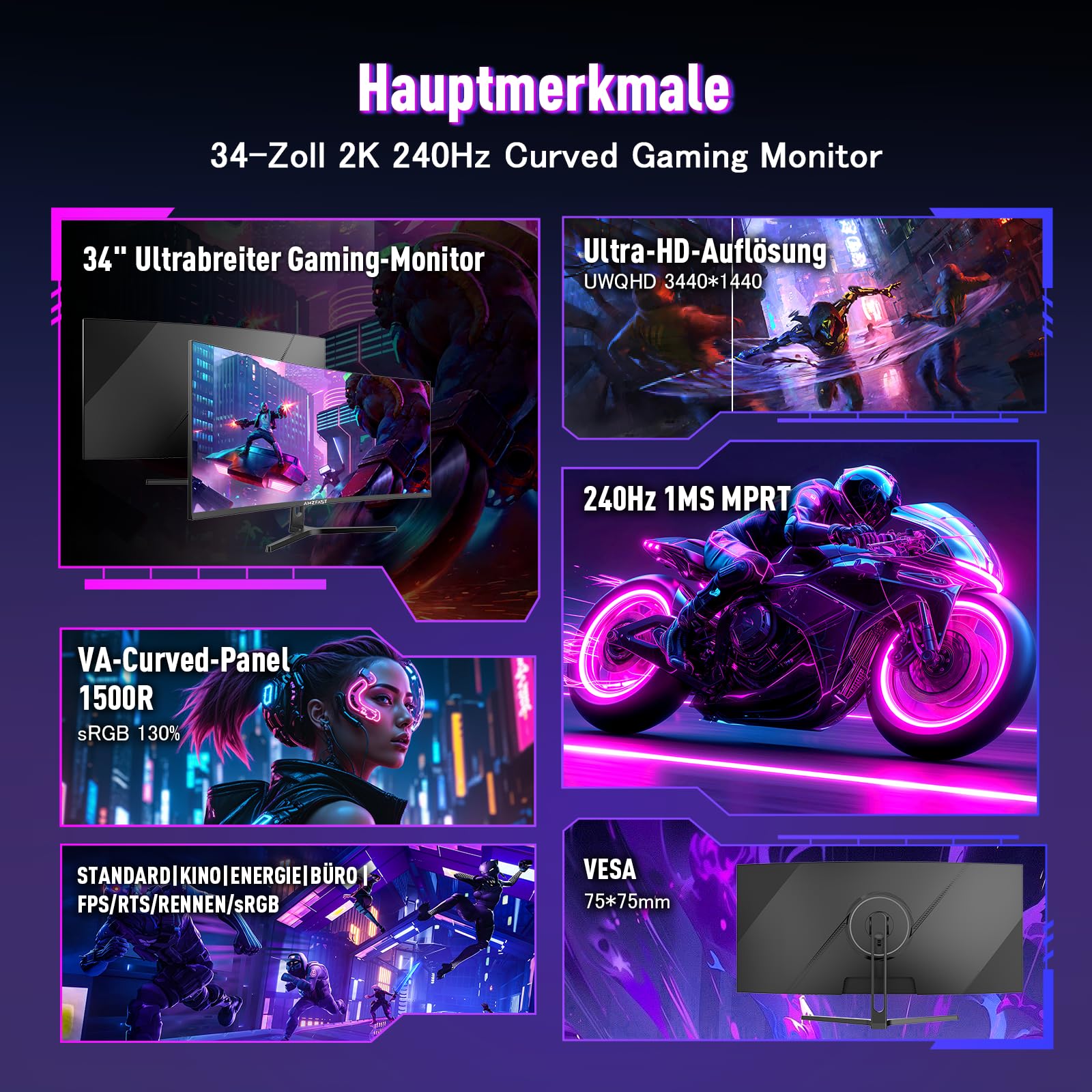 - Bildschirm: 34 Zoll UltraWide QHD (3440x1440) im 21:9-Format