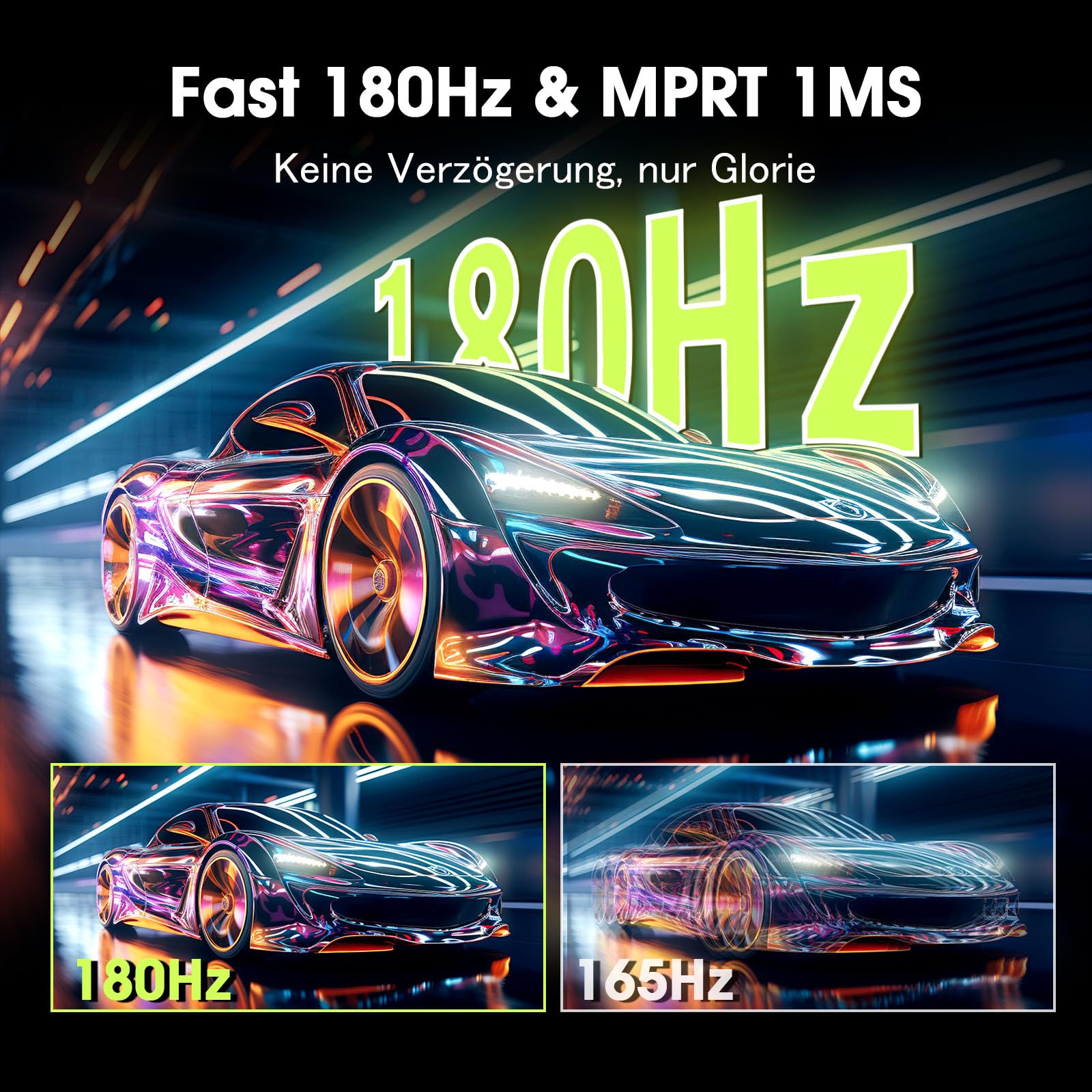 - Geschwindigkeit: Ultra-flüssige 180 Hz Bildwiederholrate und 1 ms MPRT Reaktionszeit