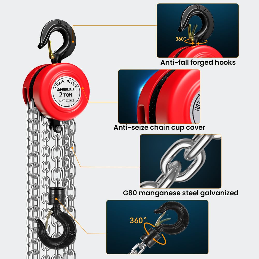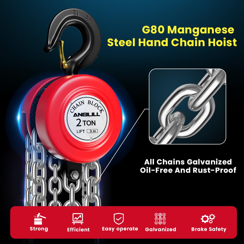 Anbull 2T Kettenzug Handseilwinde Flaschenzug Hebezug - 3m Kette