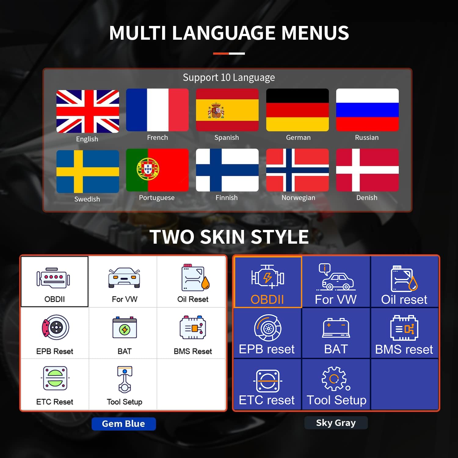 Die acht integrierten Sonderfunktionen sind ein unschätzbarer Vorteil für jeden, der Wartungsarbeiten selbst durchführt. Führen Sie nach einem Batteriewechsel die notwendige Registrierung durch, setzen Sie den Ölservice zurück oder lernen Sie neue Bremsbeläge an – alles mit einem einzigen, einfach zu bedienenden Gerät.