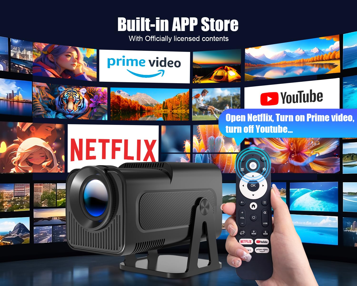 Alles in Einem, ohne Zusatzgeräte: Vergessen Sie externe TV-Boxen oder Streaming-Sticks. Mit diesem 3-in-1-Gerät (Projektor, TV und TV-Box) haben Sie direkten Zugriff auf eine riesige Welt an Filmen, Serien und Spielen. Einfach einschalten und Ihre Lieblingsinhalte geniessen.