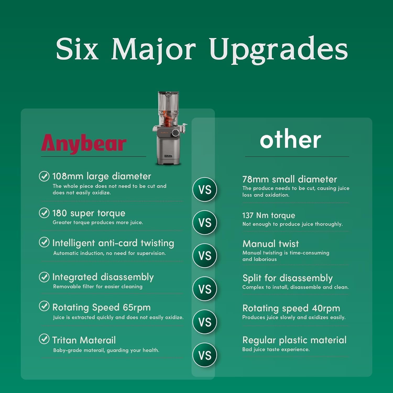 Anybear Entsafter Slow Juicer Kaltentsafter 110mm Silber