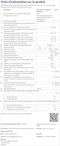 - Im Paket enthalten: AOC 27G2ZNE/BK 27-Zoll Bildschirm, Stromkabel, HDMI-Kabel, DisplayPort-Kabel, Installations-CD, Garantieblatt