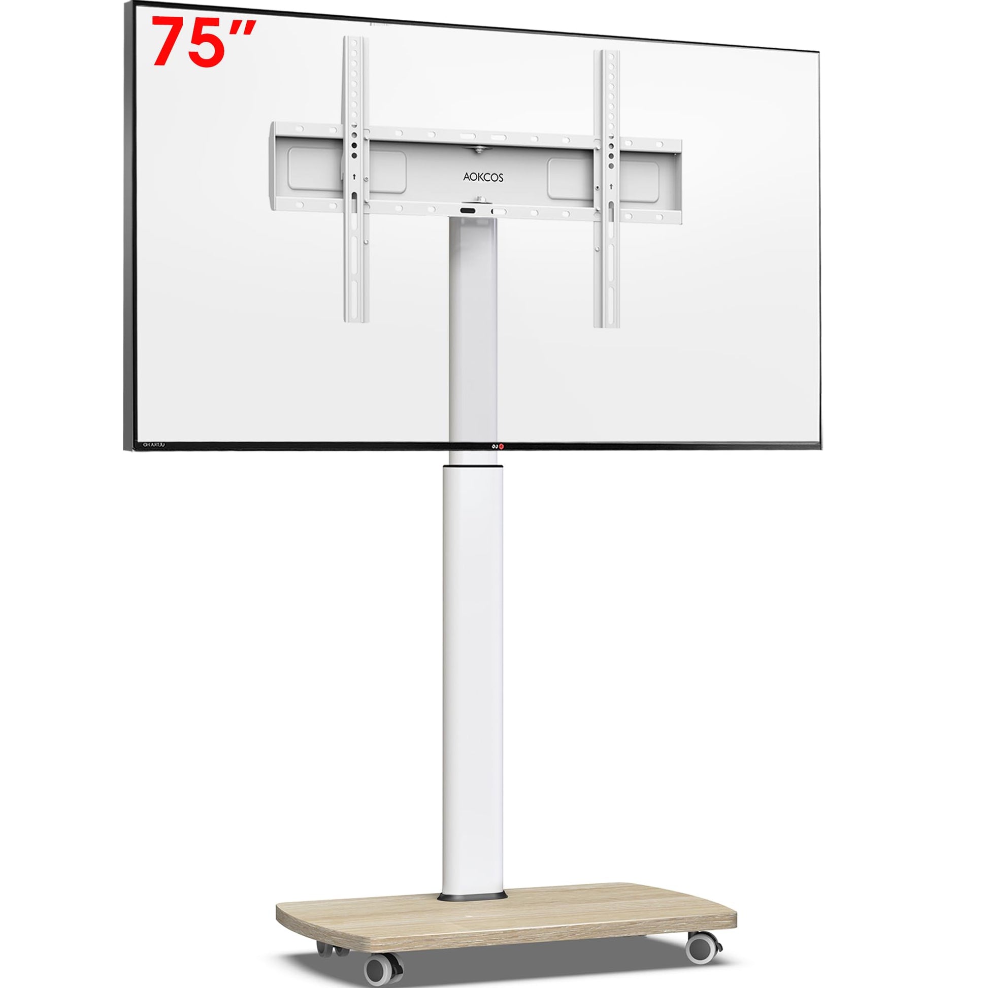AOKCOS TV Bodenständer Rollbar mit Holzregal für 43-75 Zoll