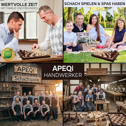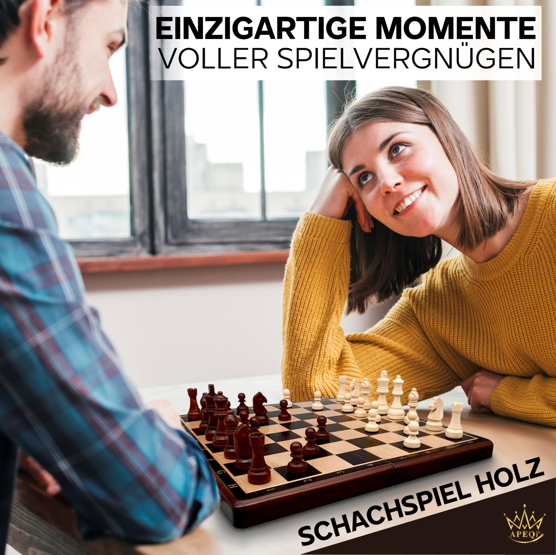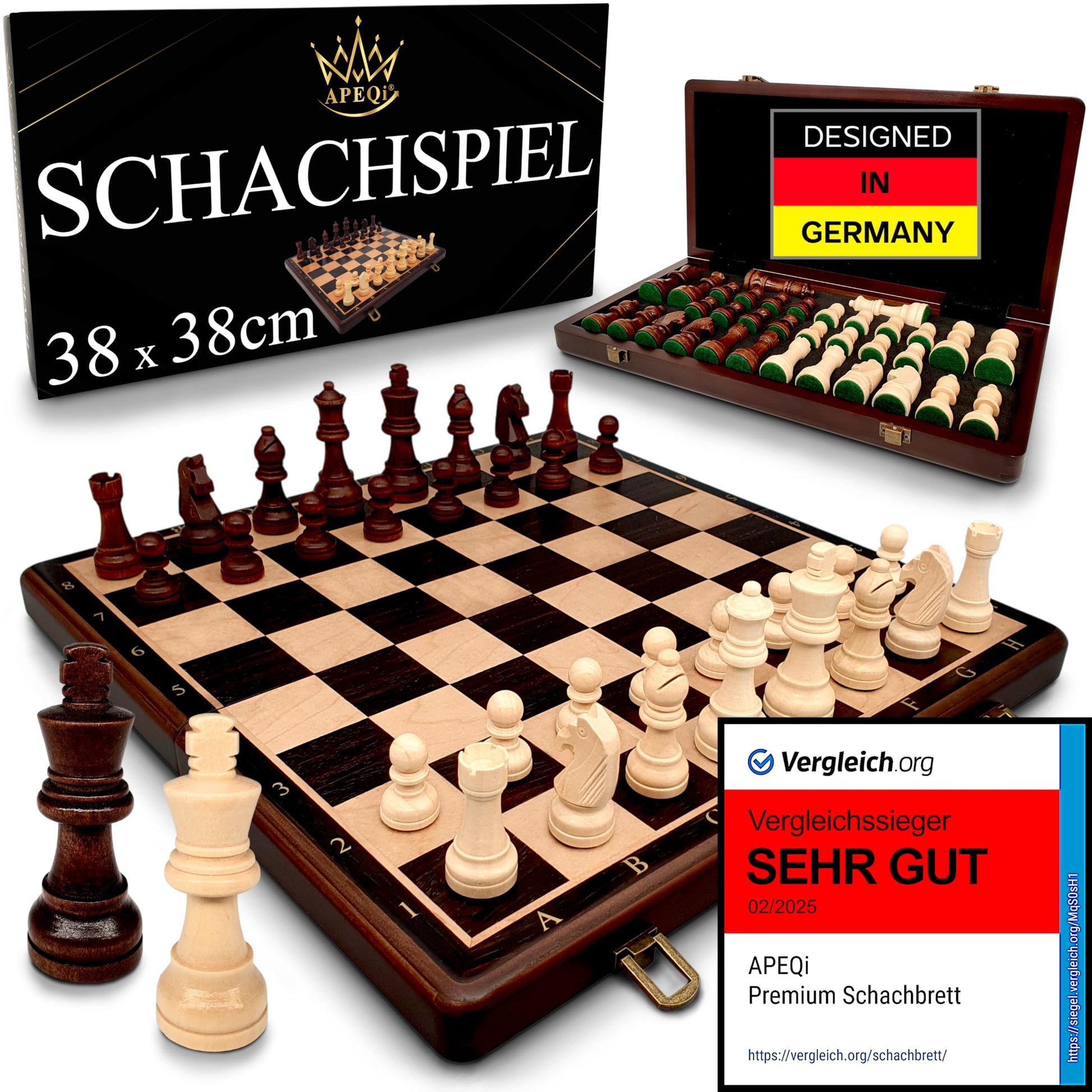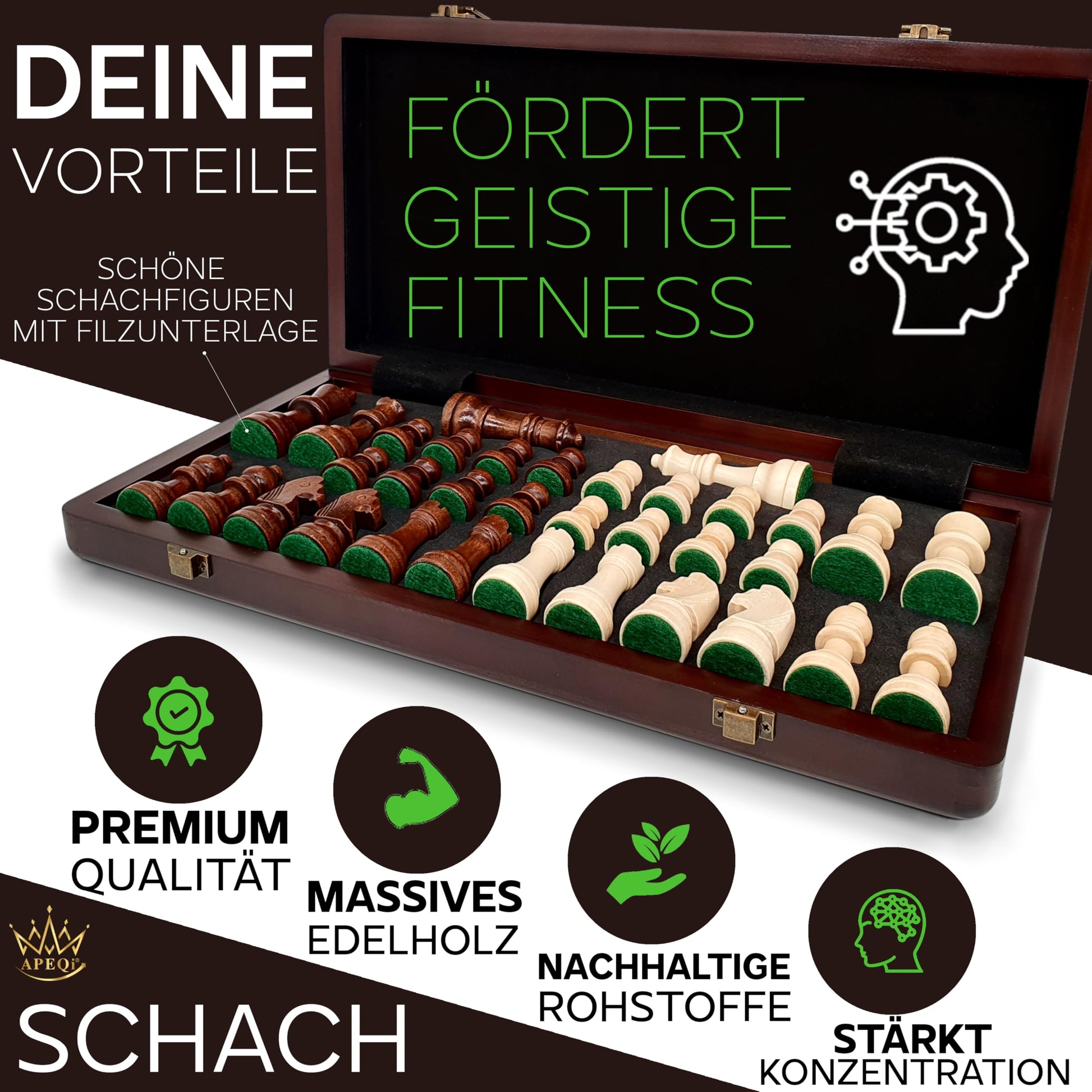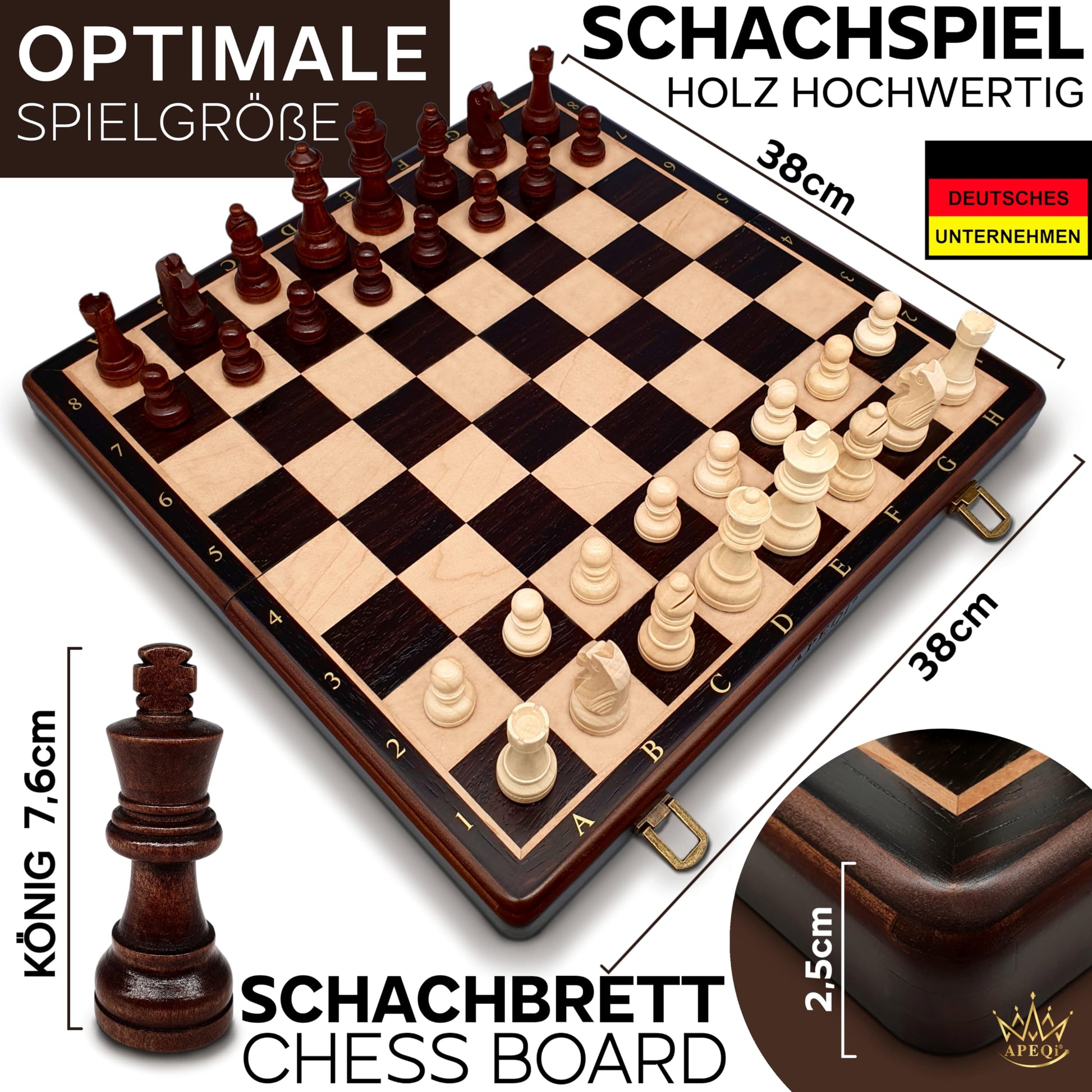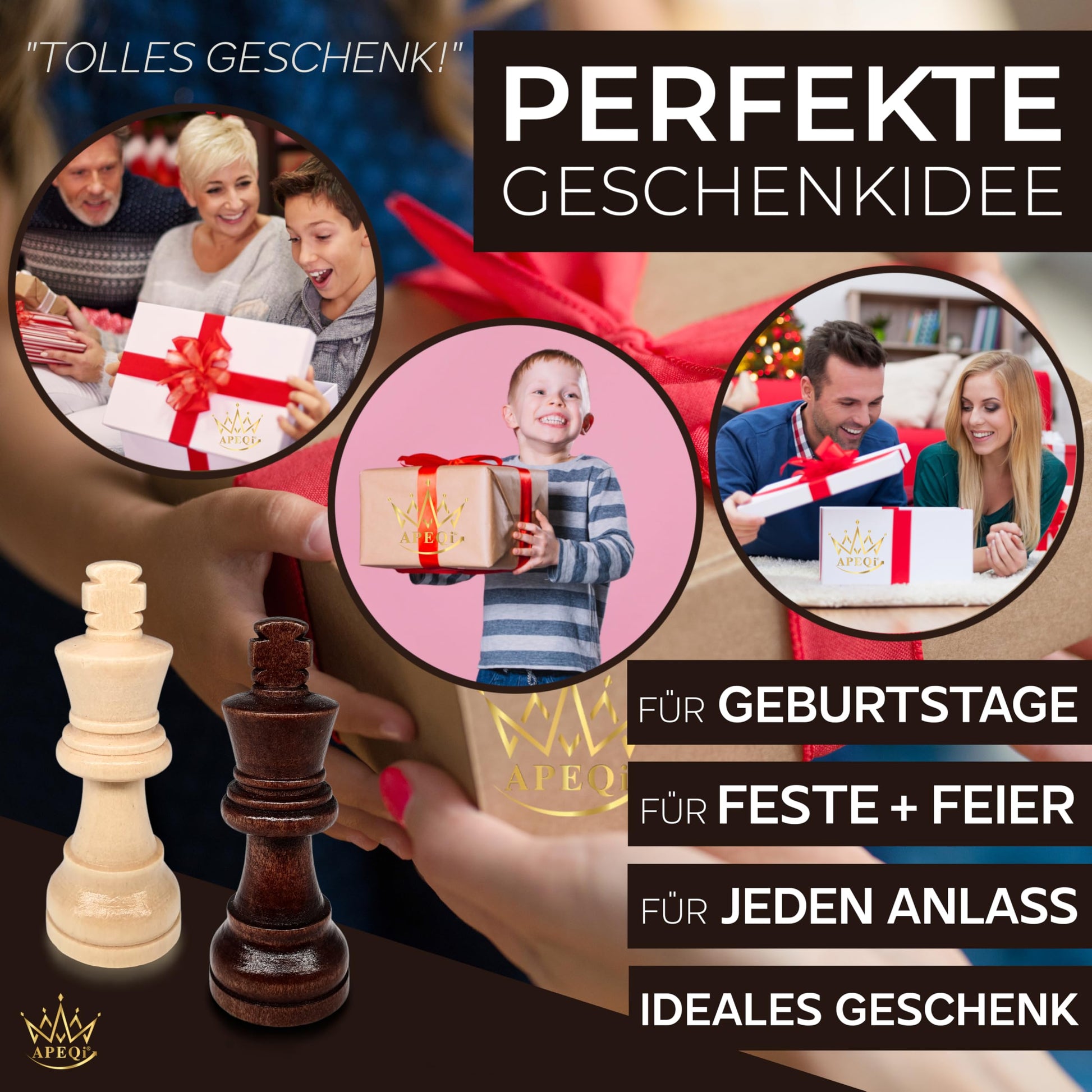APEQi® Premium Schachspiel Holz – 38x38cm, klappbar, 2 Extra-Damen