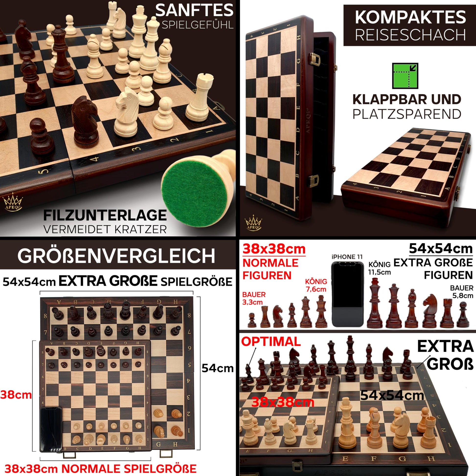 - Ideale Grösse: Mit einer Spielfläche von 38 x 38 cm und einer Königshöhe von 7.6 cm bietet das Set ein optimales Spielerlebnis.
