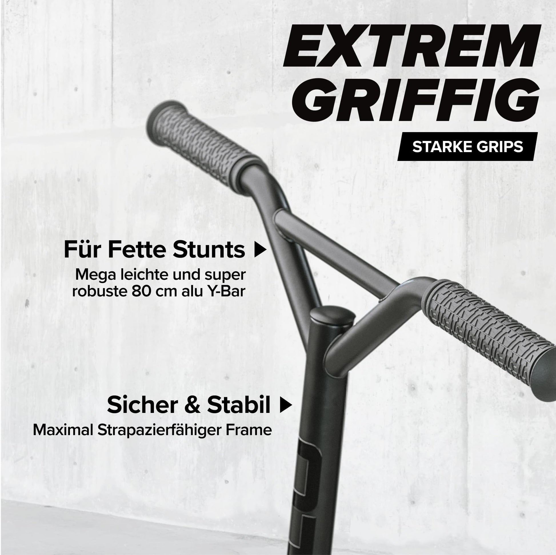 Ja, der 80 cm hohe Y-Lenker ist um 360° drehbar und somit perfekt für alle Arten von Tricks und Stunts geeignet. Dies gibt Fahrern die volle Freiheit für kreative Manöver im Skatepark oder auf der Strasse.