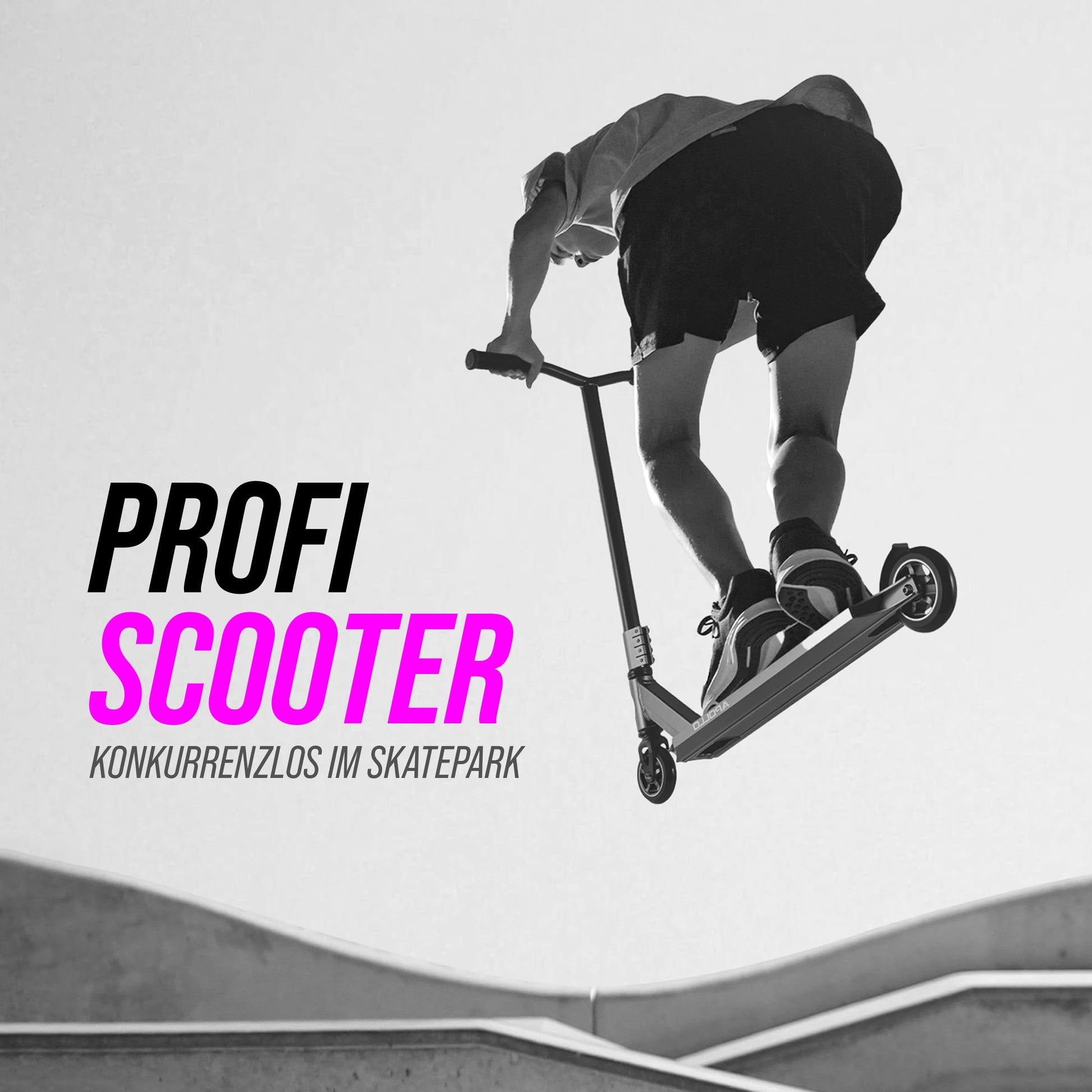 Seine Performance-Ausstattung: Der um 360° drehbare Y-Lenker ermöglicht volle Trick-Kontrolle. Die 110mm PU-Rollen mit Alukern und die schnellen ABEC 9 Kugellager sorgen für Speed und eine reibungslose Fahrt, während die robuste Stahlgabel und die 3-fach-Klemme die nötige Stabilität für Sprünge bieten.