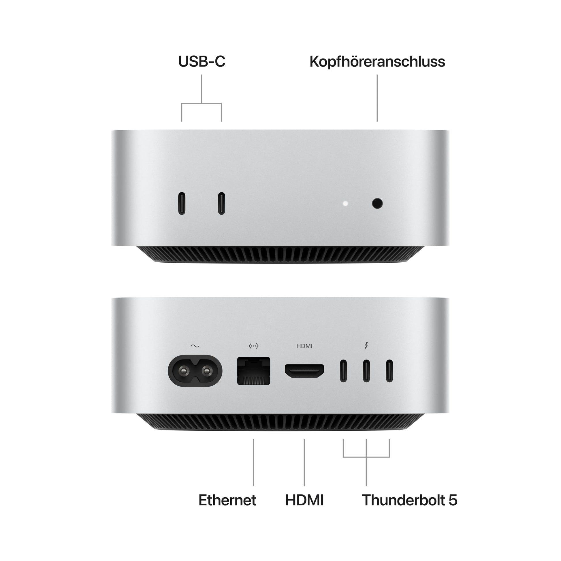 Dank seines ultra-kompakten Formats findet der Mac mini auf jedem Schreibtisch Platz und ist die ideale Lösung für ein aufgeräumtes, aber leistungsstarkes Setup. Er ermöglicht professionelles Arbeiten auf höchstem Niveau, egal ob für kreative Projekte, Softwareentwicklung oder datenintensive Analysen – Sie haben stets die nötigen Leistungsreserven zur Verfügung.
