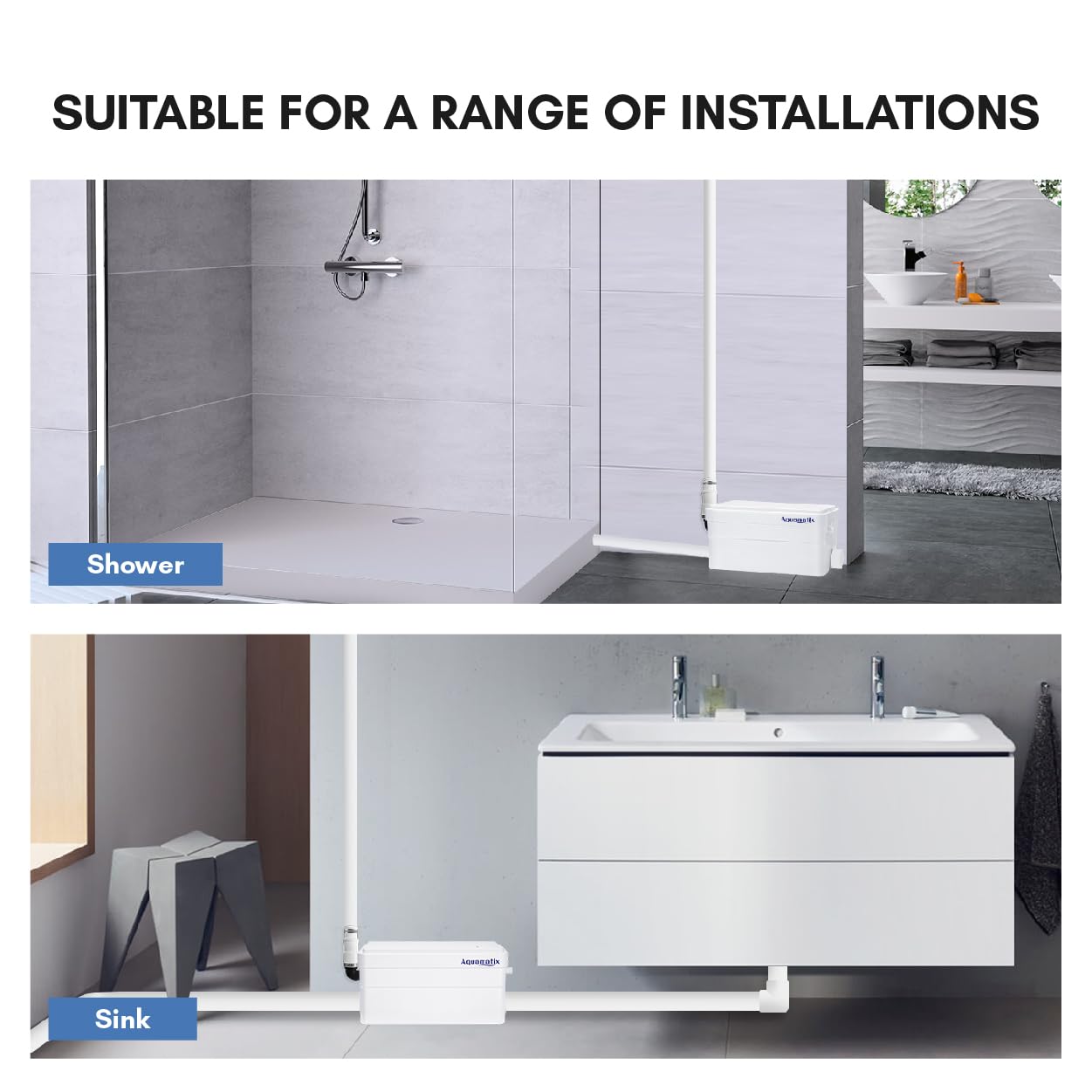 Sie können eine Dusche und ein Waschbecken (Lavabo) gleichzeitig anschliessen. Die Pumpe verfügt über zwei flexible Einlässe und ist speziell für die Entsorgung von Grauwasser aus dem Badezimmer konzipiert.
