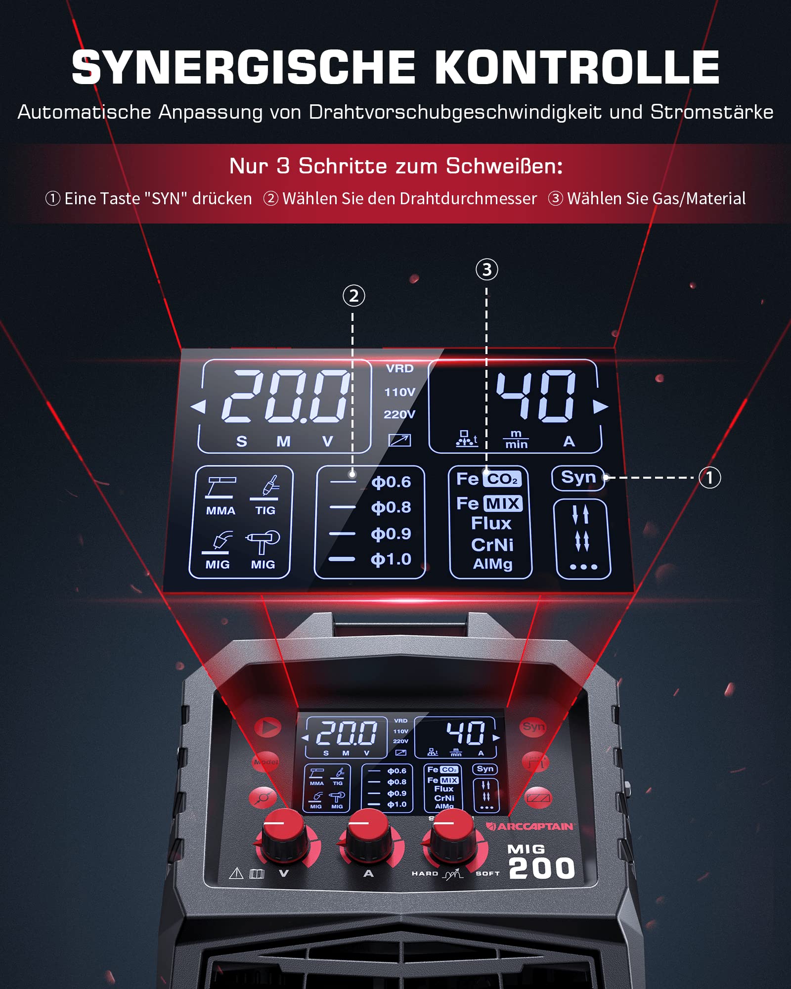 ARCCAPTAIN MIG MAG Schweißgerät 200A vollsynergisch 7-in-1