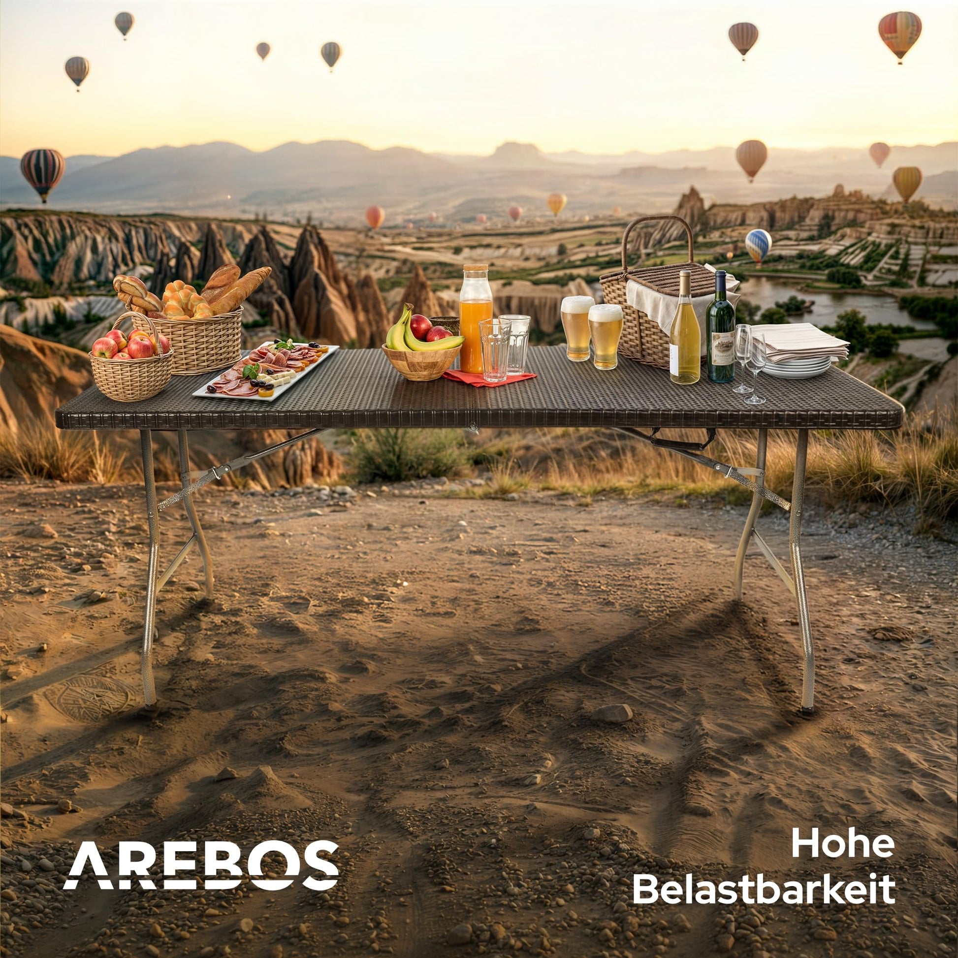 Arebos Buffettisch Klappbar Rattan Optik Schwarz 182x74 cm