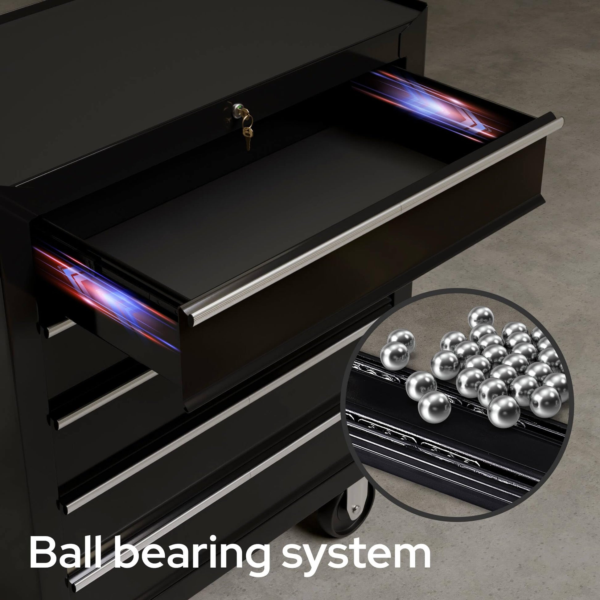 - Zentralverriegelung: Ein Schloss sichert alle Fächer gleichzeitig und schützt Ihr Werkzeug vor unbefugtem Zugriff (2 Schlüssel im Lieferumfang enthalten).