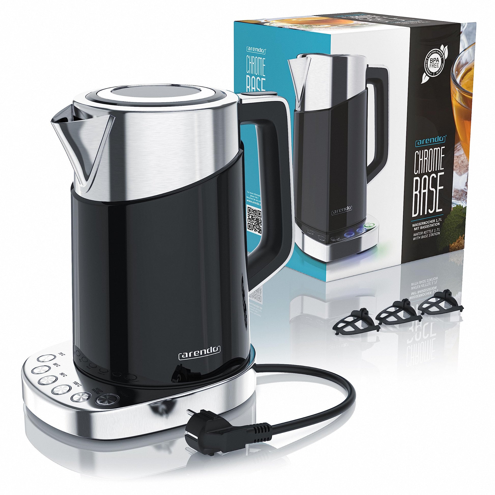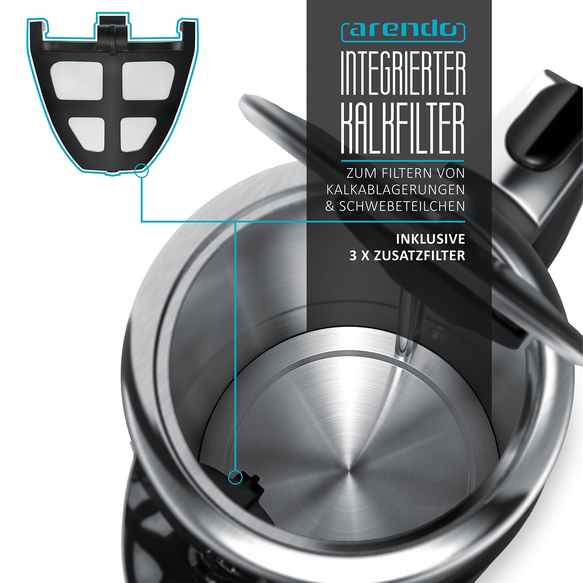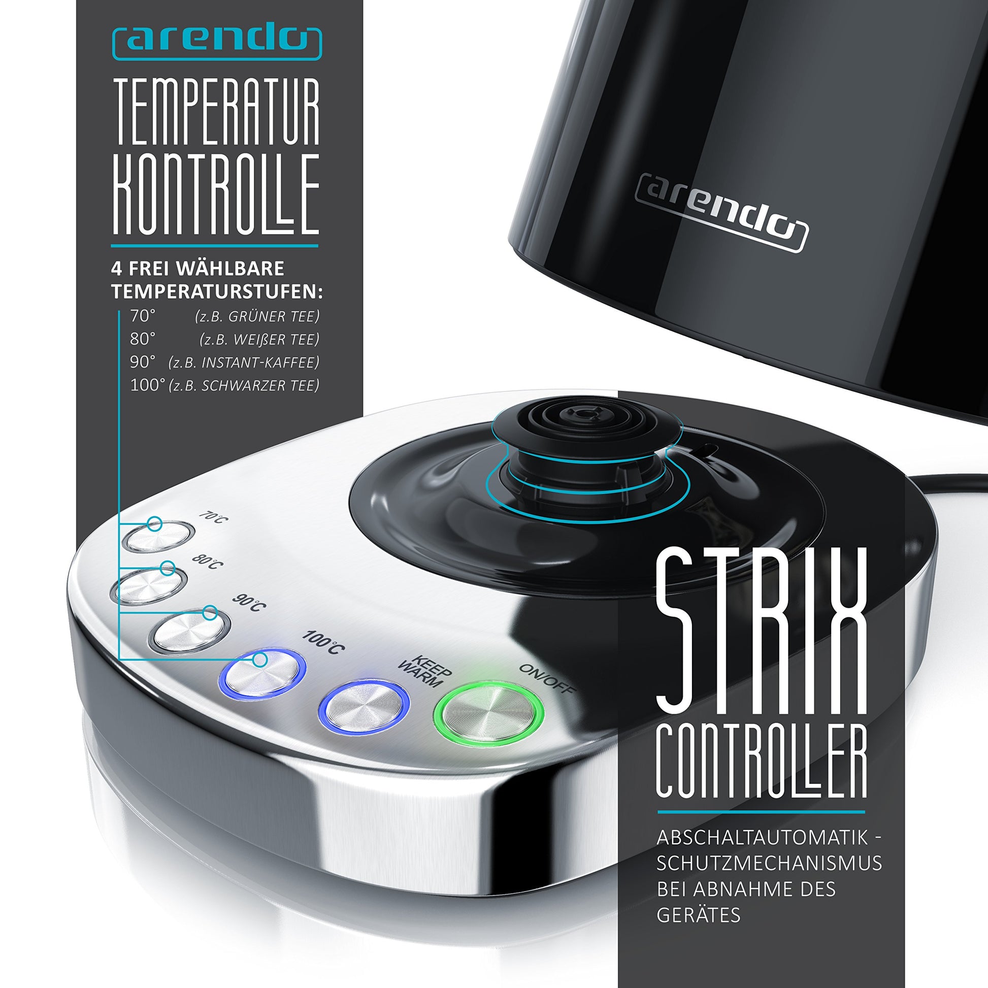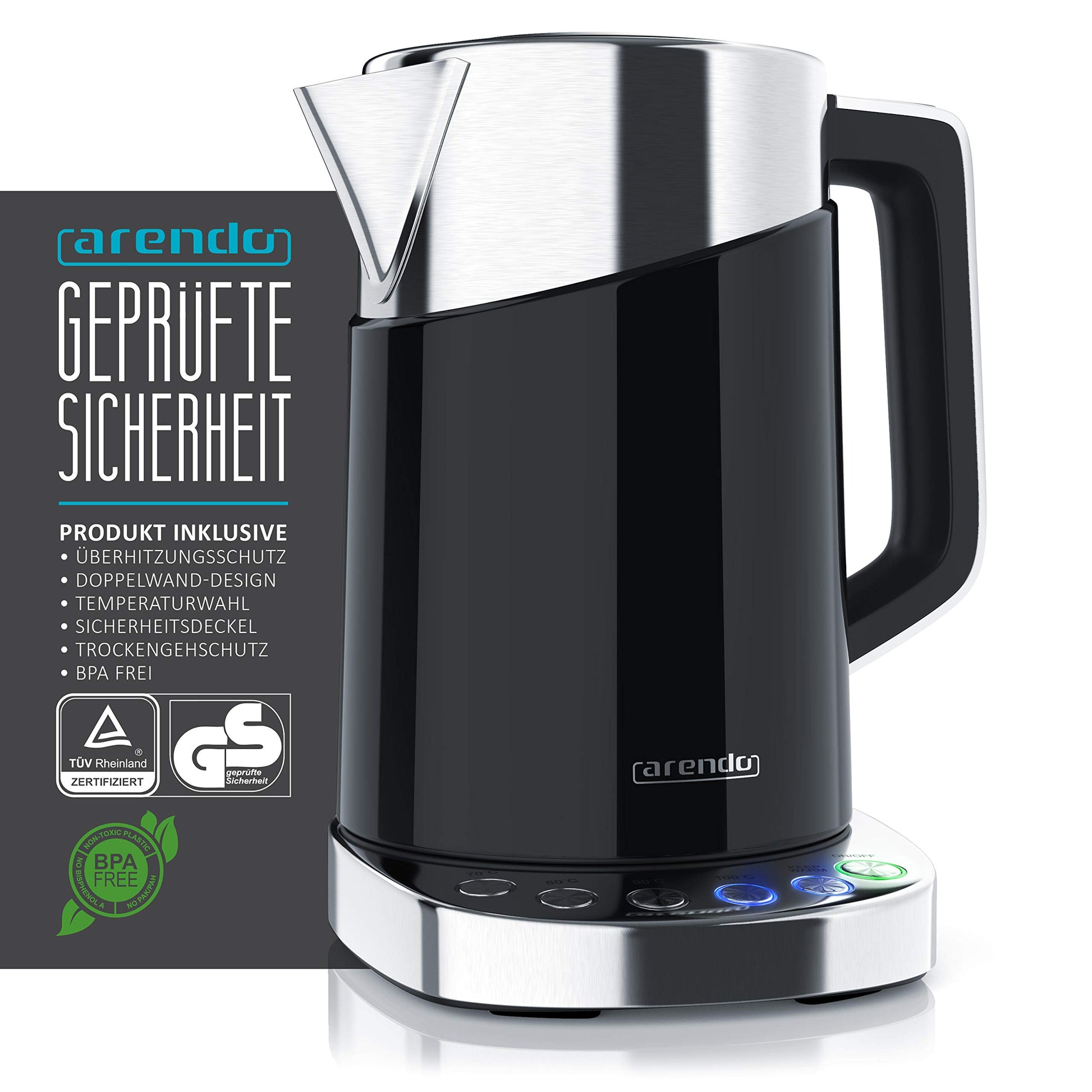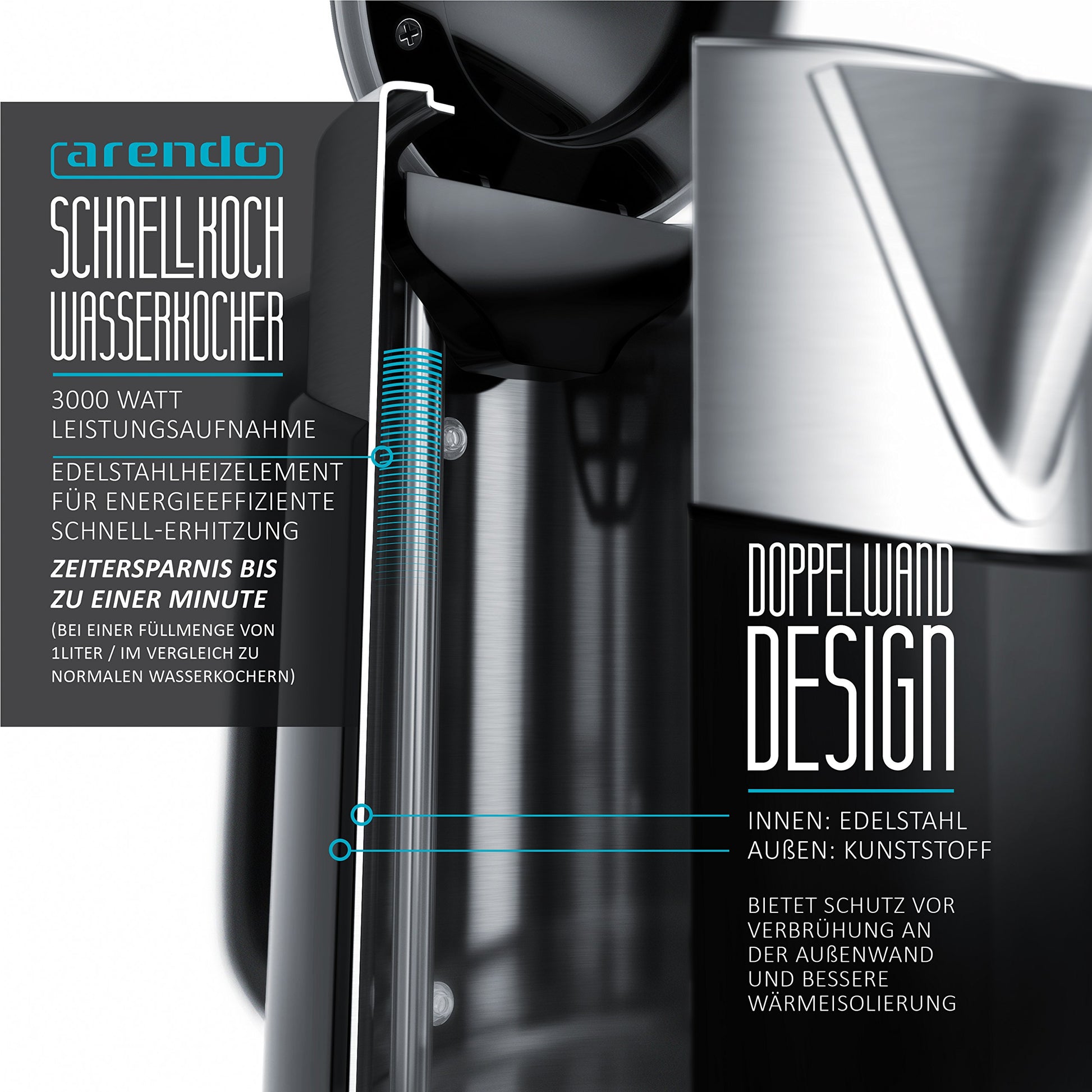 Arendo Turbo Wasserkocher Edelstahl mit Temperaturwahl 3000W