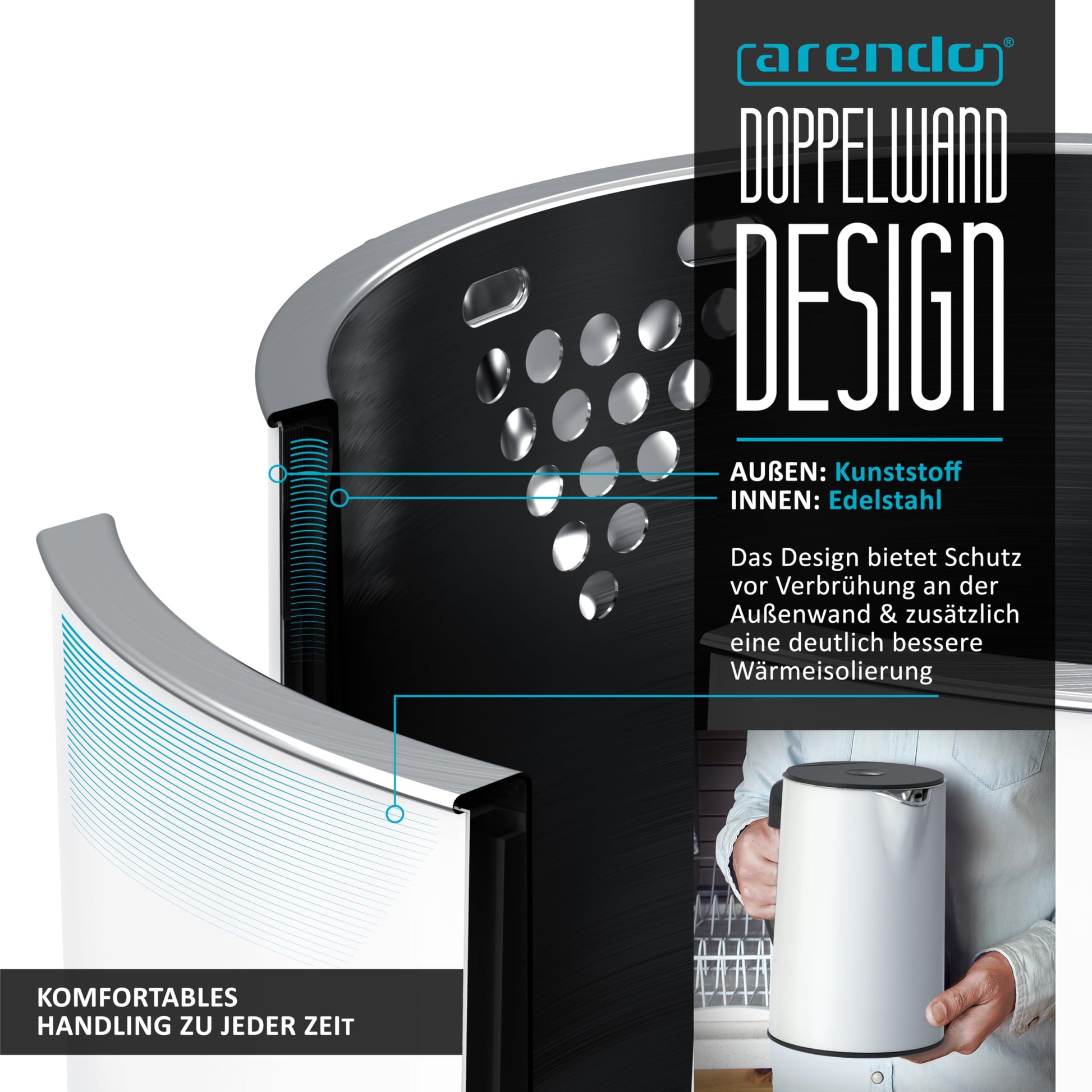 Arendo ELEGANT Wasserkocher - Edelstahl 1.5L Temperatur Weiss