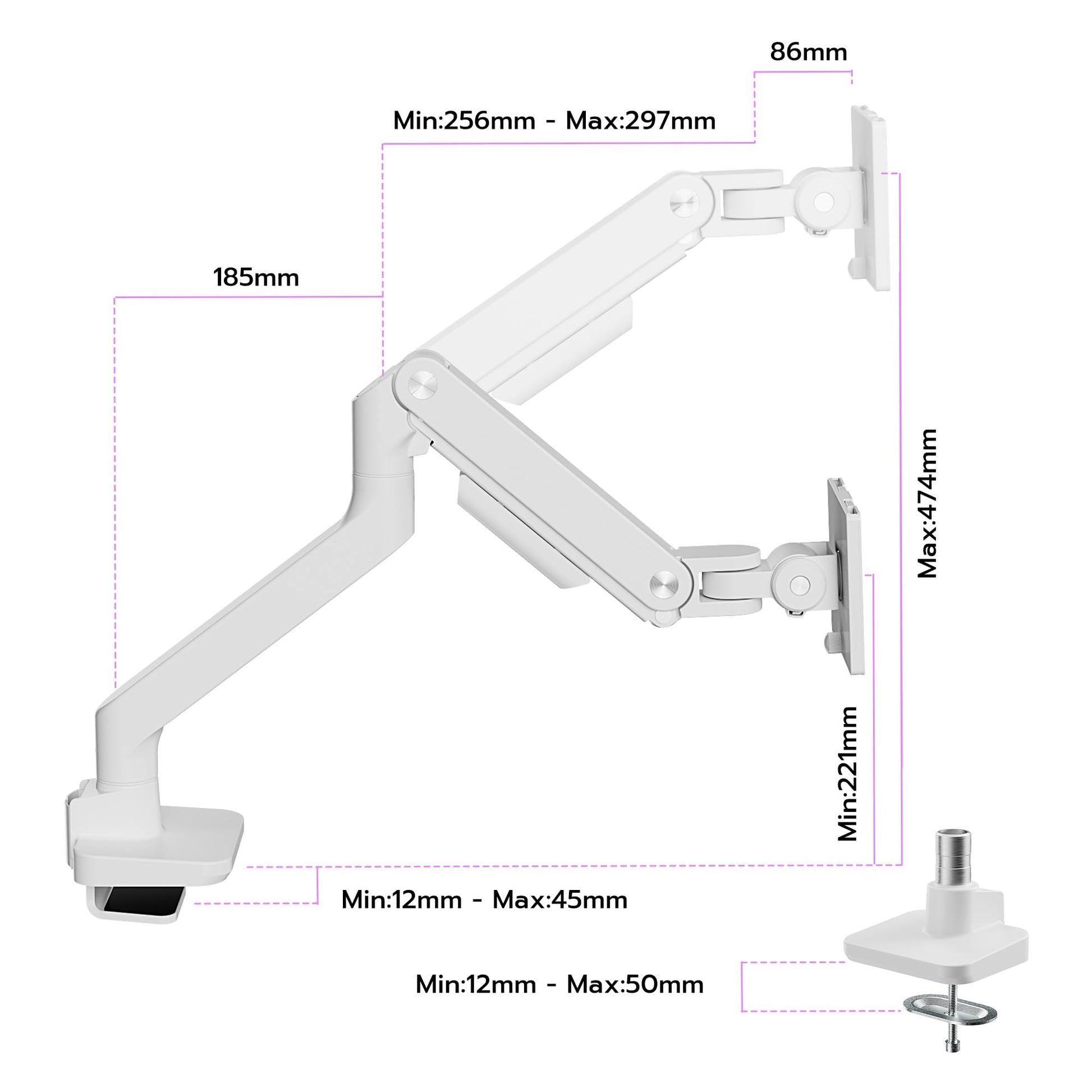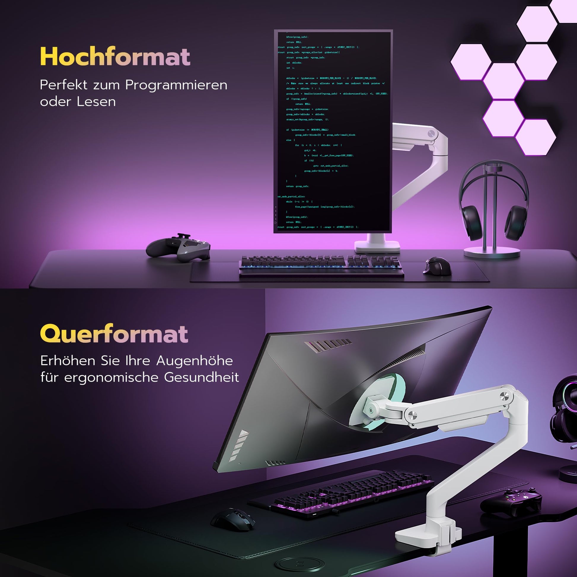 ARES WING Monitor Arm Gasfeder 17-49 Zoll – Weiss