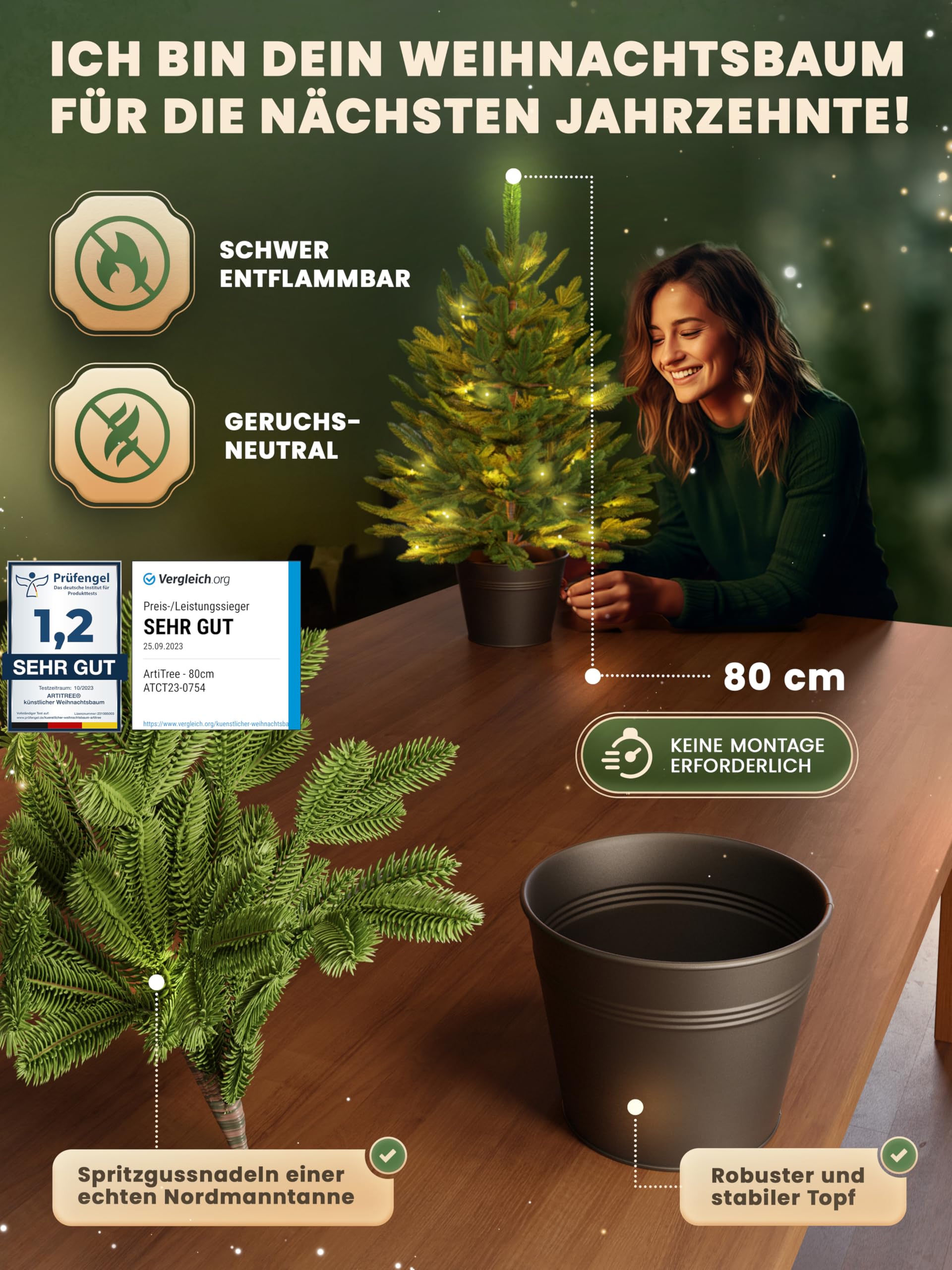 ArtiTree Künstlicher Weihnachtsbaum 60cm im Topf - mit LED