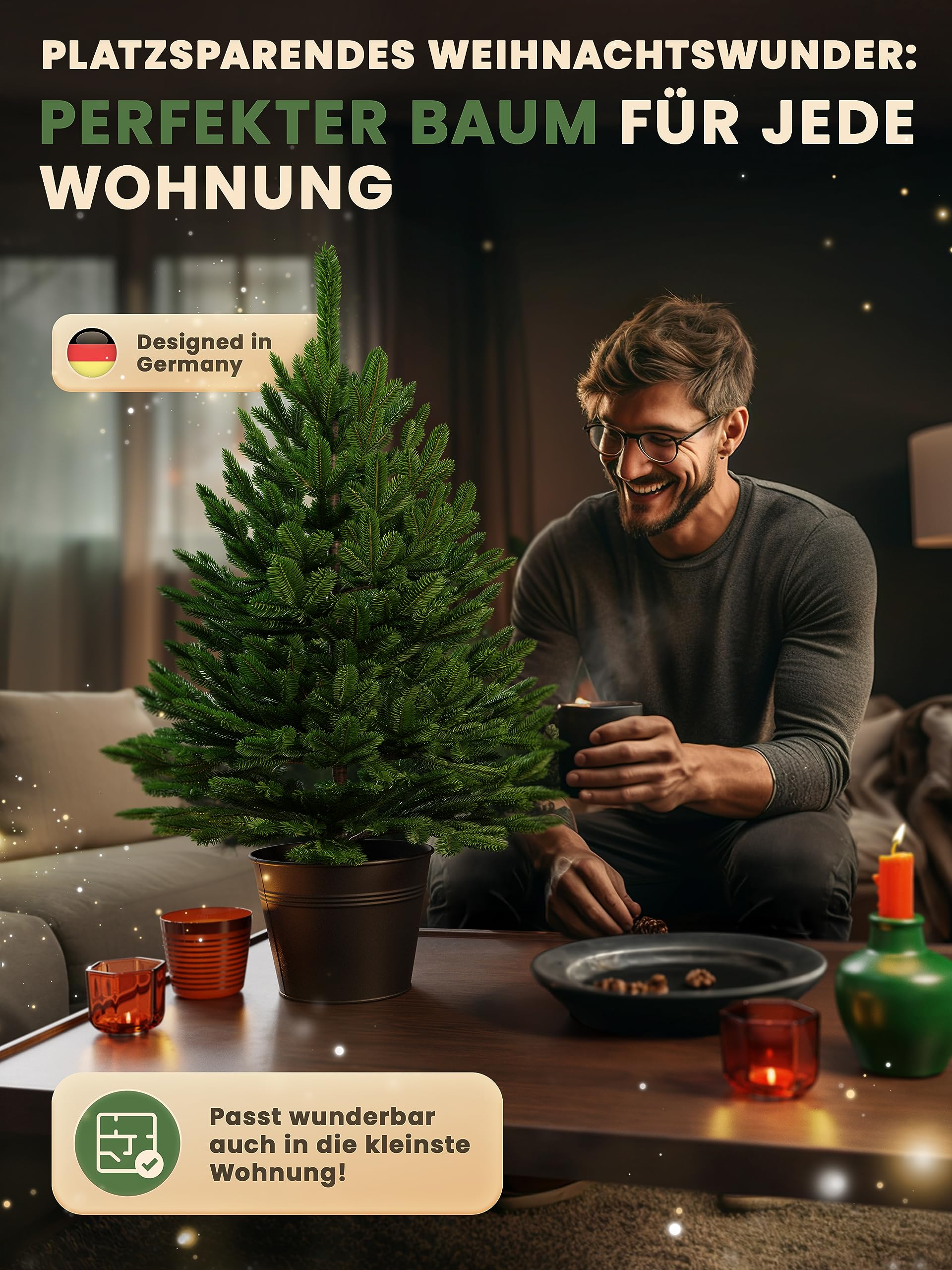 - Einfache Handhabung: Der Baum ist unkompliziert aufzustellen und steht dank des soliden Topfes sofort stabil an seinem Platz.