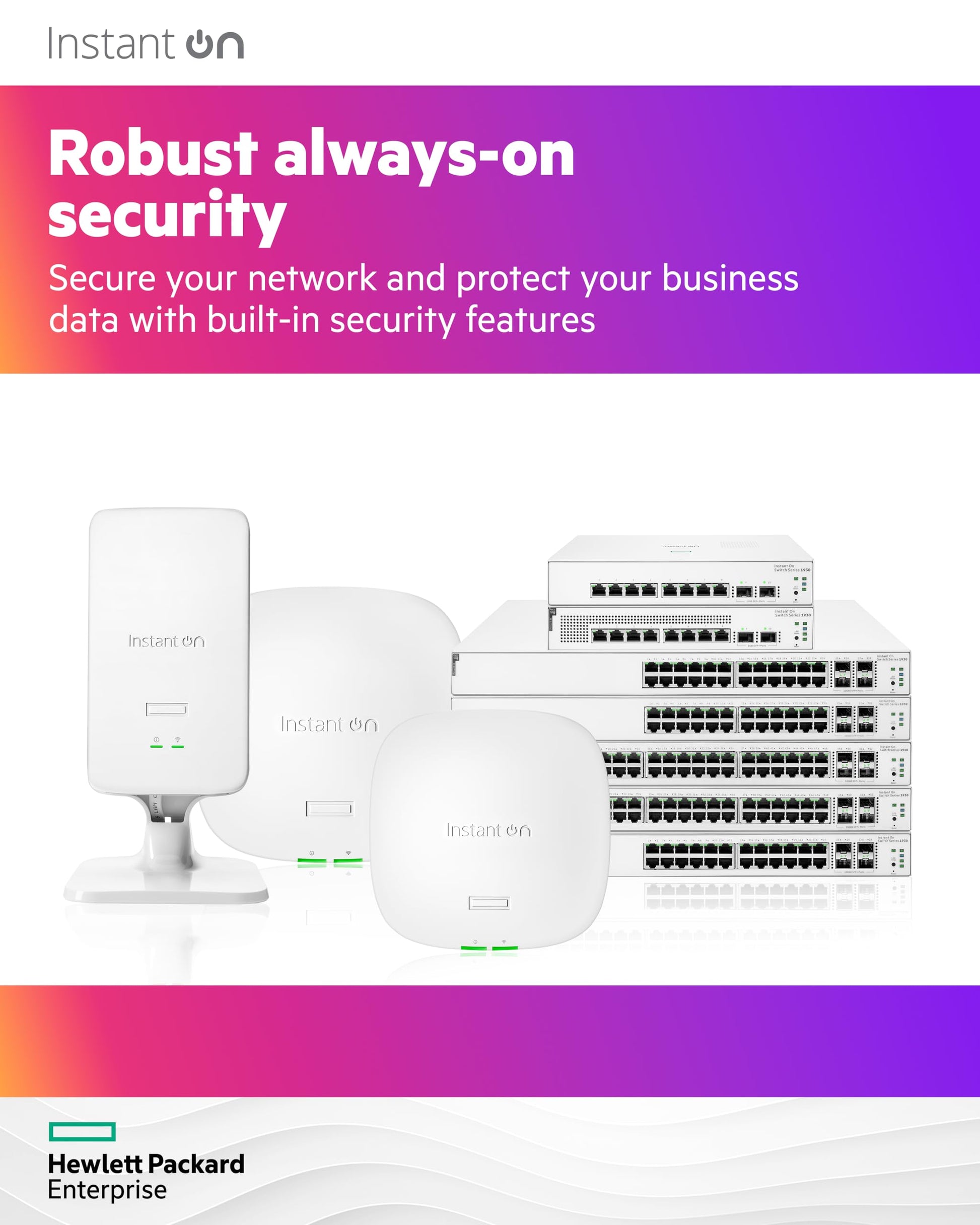 Profitieren Sie von professioneller Business-Leistung zu einem attraktiven Preis. Es fallen keine wiederkehrenden Lizenzgebühren oder Abonnementkosten an. Zusätzlich profitieren Sie von einer 2-Jahres-Garantie von HPE Networking.