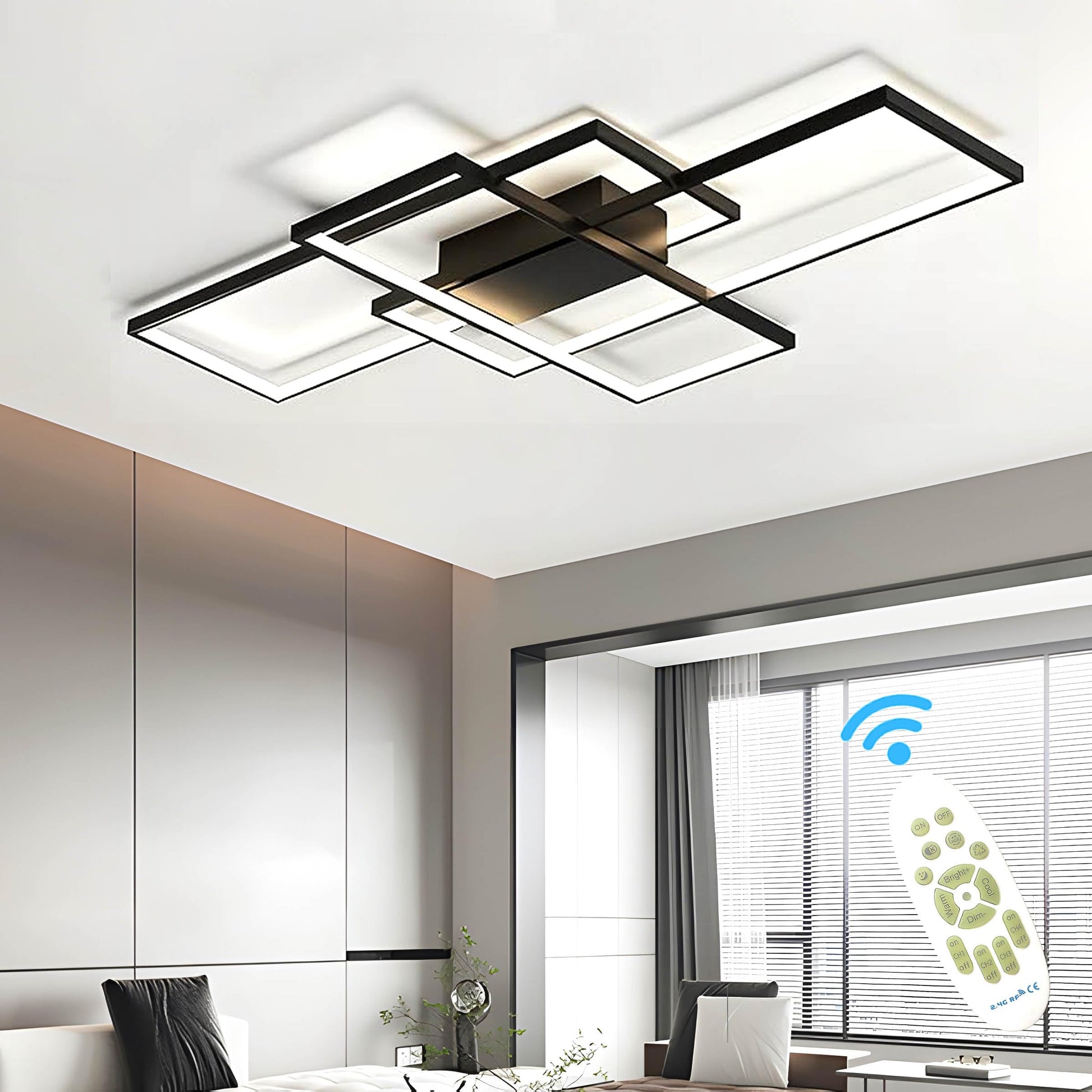 ASJK LED Deckenleuchte Modern Eckig – 80cm, Schwarz mit Fernbedienung