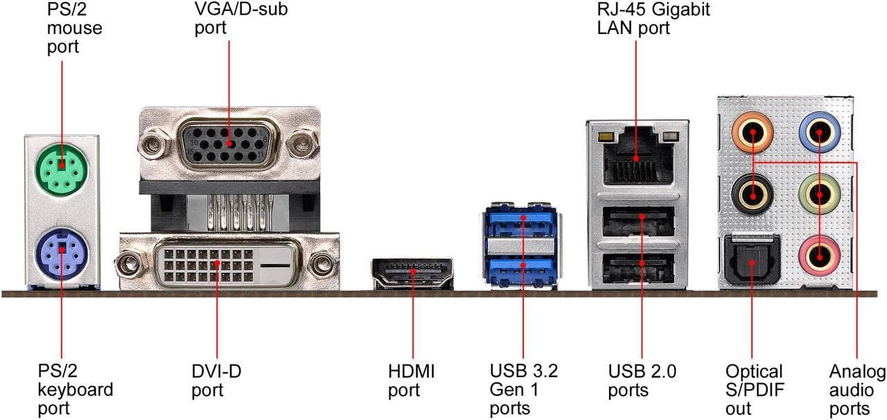 - Grafikvielfalt: Verfügt über drei verschiedene Grafikausgänge: D-Sub, HDMI und DVI-D für flexible Monitor-Setups.