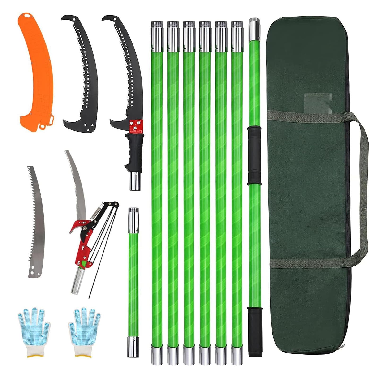 Das Komplettpaket beinhaltet 8 Stangensegmente, einen Scherenkopf, ein Sägeblatt aus legiertem Stahl, ein zusätzliches Ersatz-Sägeblatt für langanhaltende Schärfe sowie eine robuste Transporttasche für die einfache und platzsparende Lagerung.