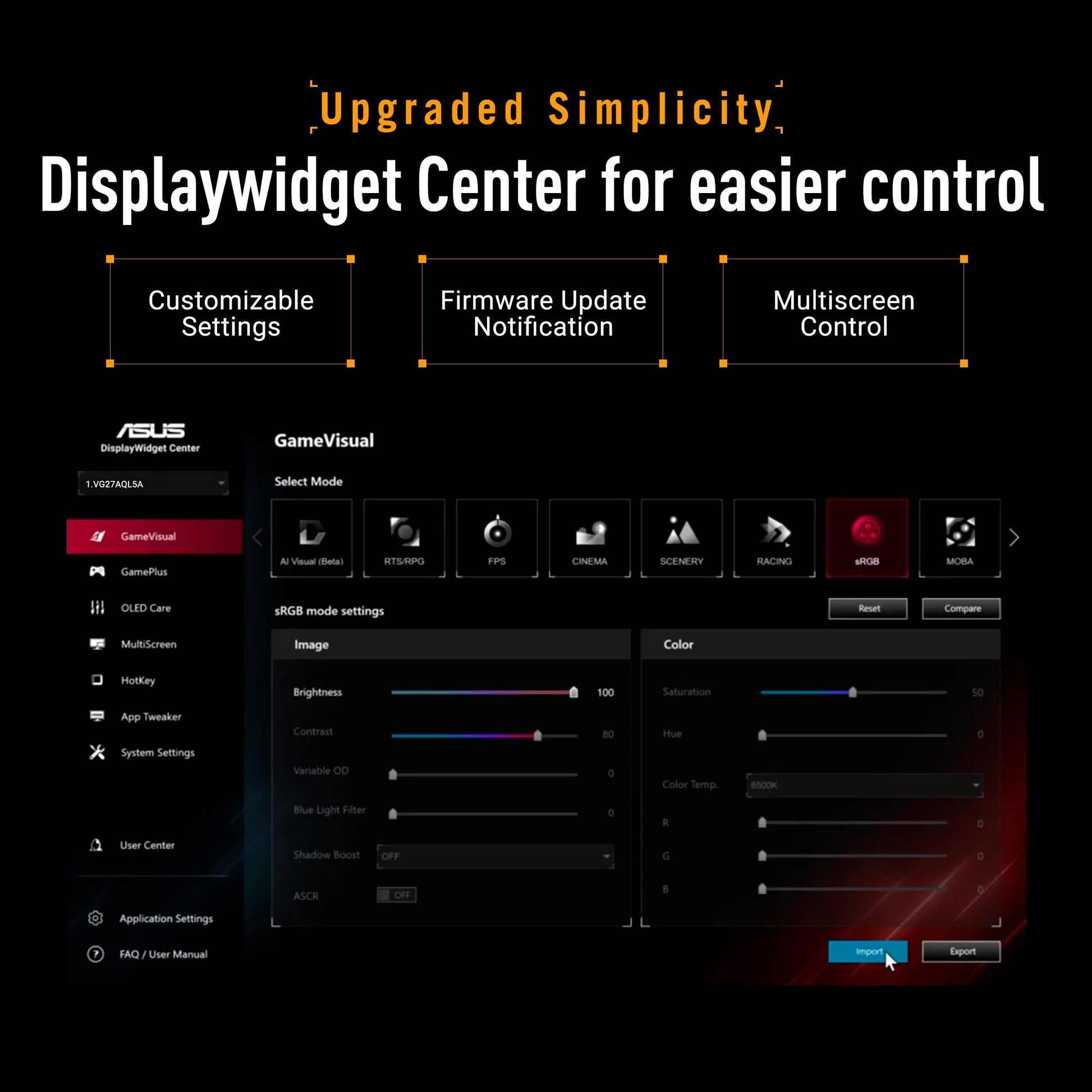- Bedienung: Einfache und intuitive Anpassung aller Monitoreinstellungen direkt per Maus über das DisplayWidget Center.