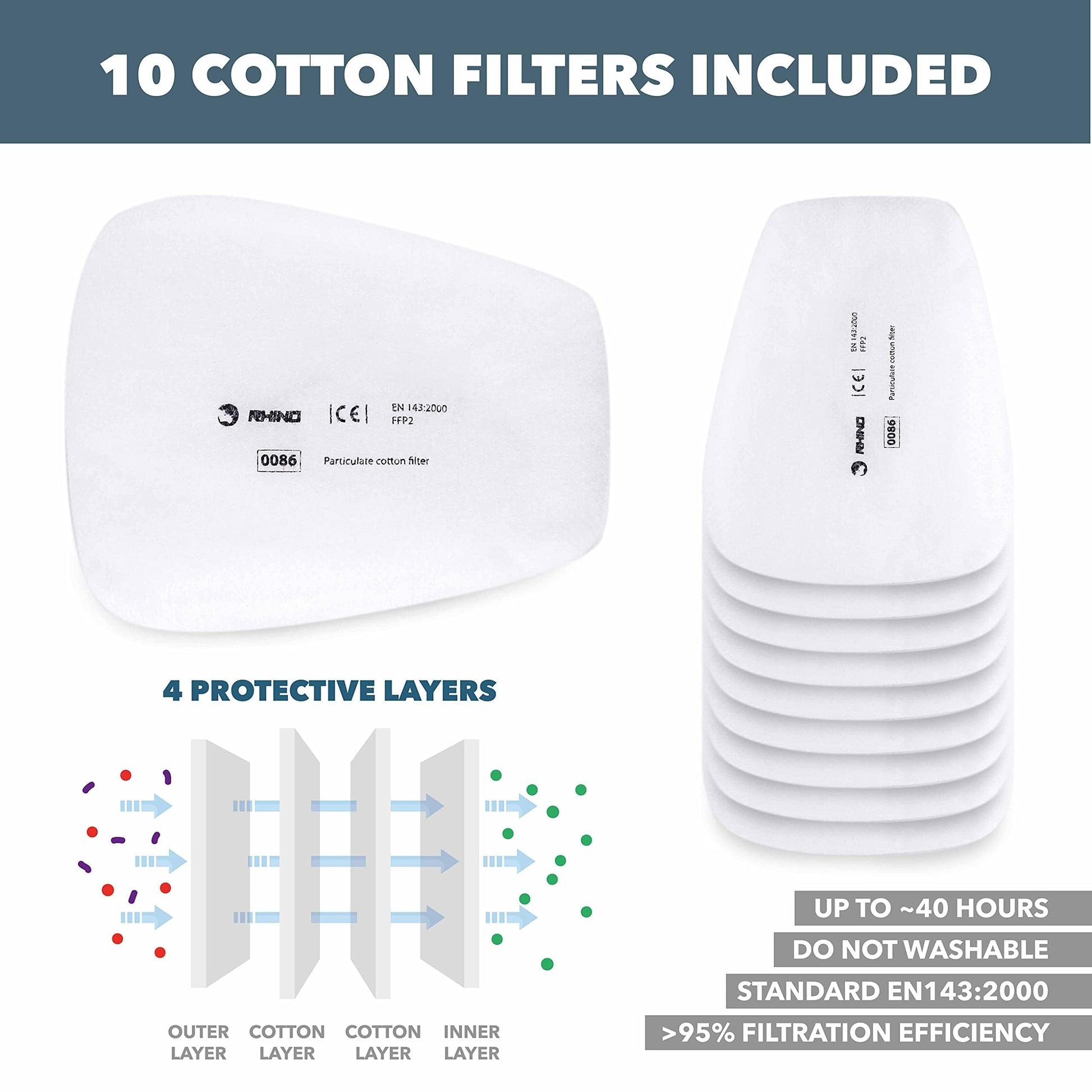 - Umfassendes Komplettset: Beinhaltet die Atemschutzmaske, zehn Ersatz-Baumwollfilter, zwei Filterkartuschen (P-A-1 und P-E-1), zwei Kartuschenabdeckungen sowie zwei Paar Schutzhandschuhe und eine Anleitung.