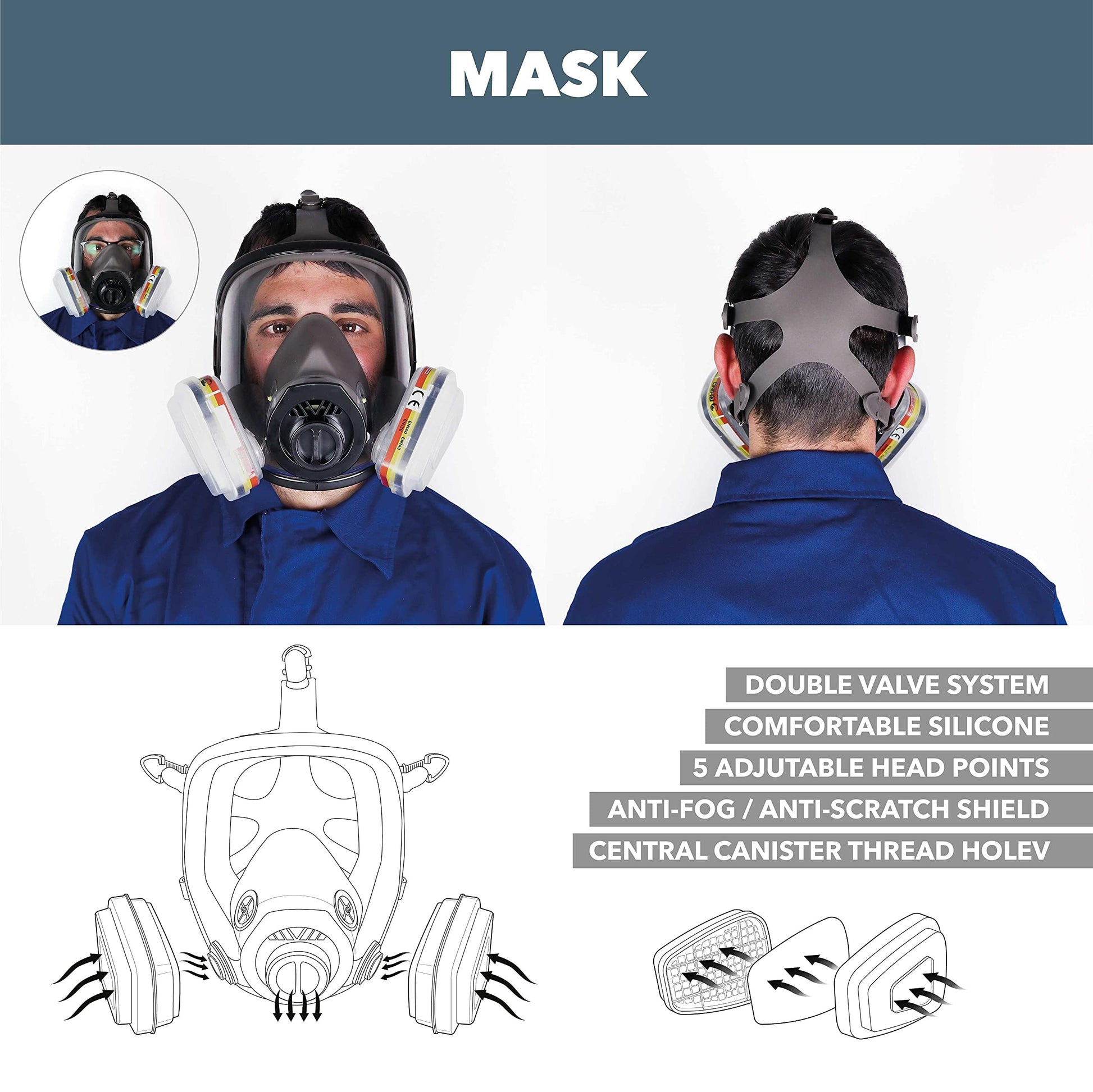 Die Maske ist ideal für Lackierarbeiten, den Umgang mit Epoxidharz, Schleifen, Polieren, Schweissen und Laborarbeiten. Die Filter schützen zuverlässig vor organischen Dämpfen, sauren Gasen, Partikeln und Staub.