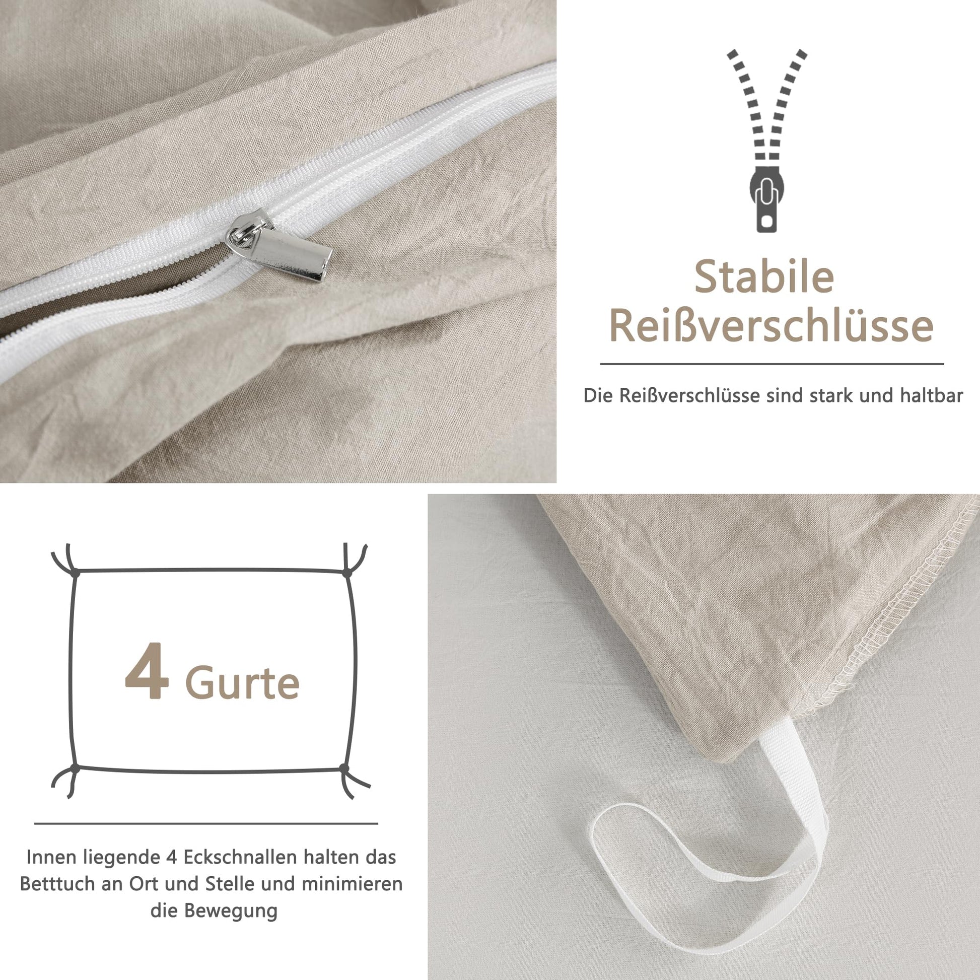 ATsense Bettwäsche 4teilig Baumwolle 135x200 cm Beige