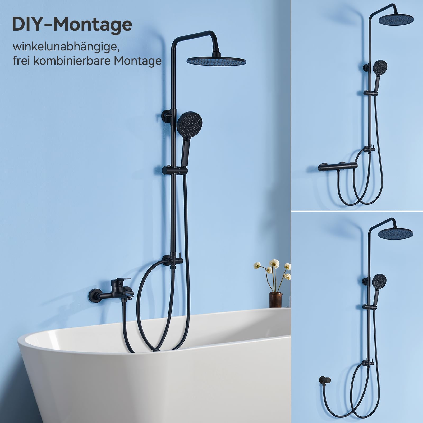 Werten Sie Ihr Badezimmer mit diesem eleganten, schwarzen Duschsystem im Handumdrehen auf. Es ist die ideale Lösung für eine unkomplizierte Modernisierung und lässt sich einfach an Ihre bestehende Armatur anschliessen.