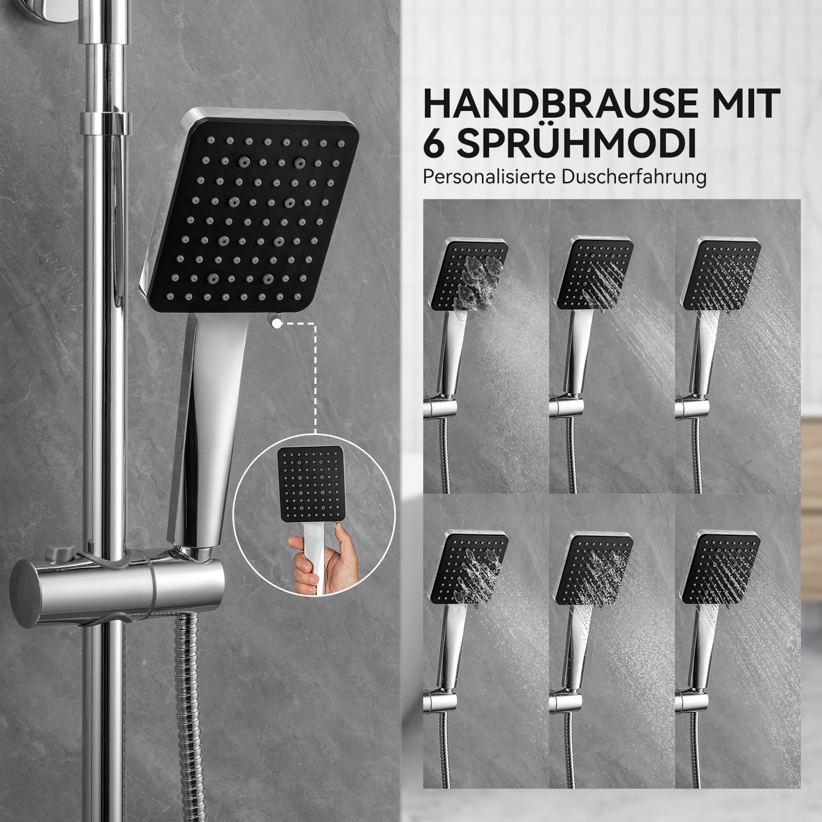 - Handbrause mit 6 wählbaren Strahlarten