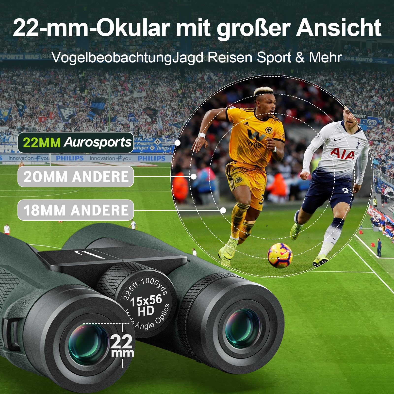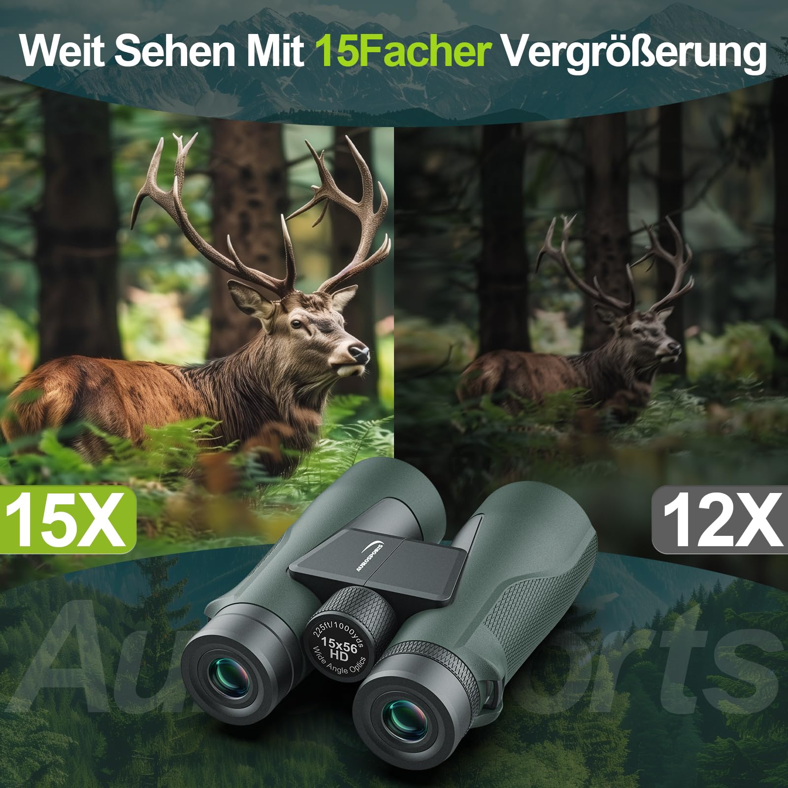 Aurosports 15x56 HD Fernglas Grosses Sichtfeld für Erwachsene - Grün