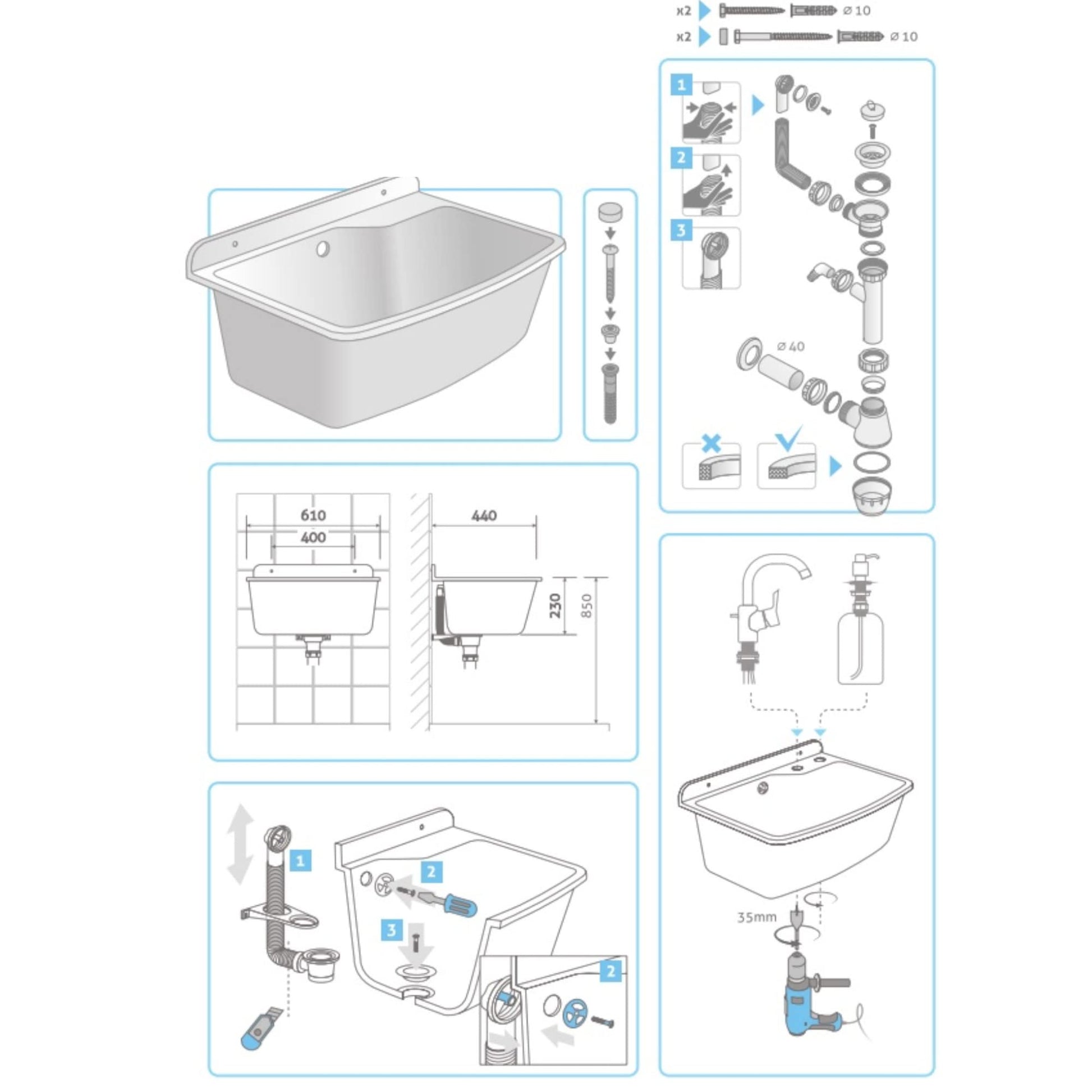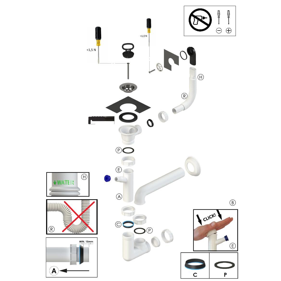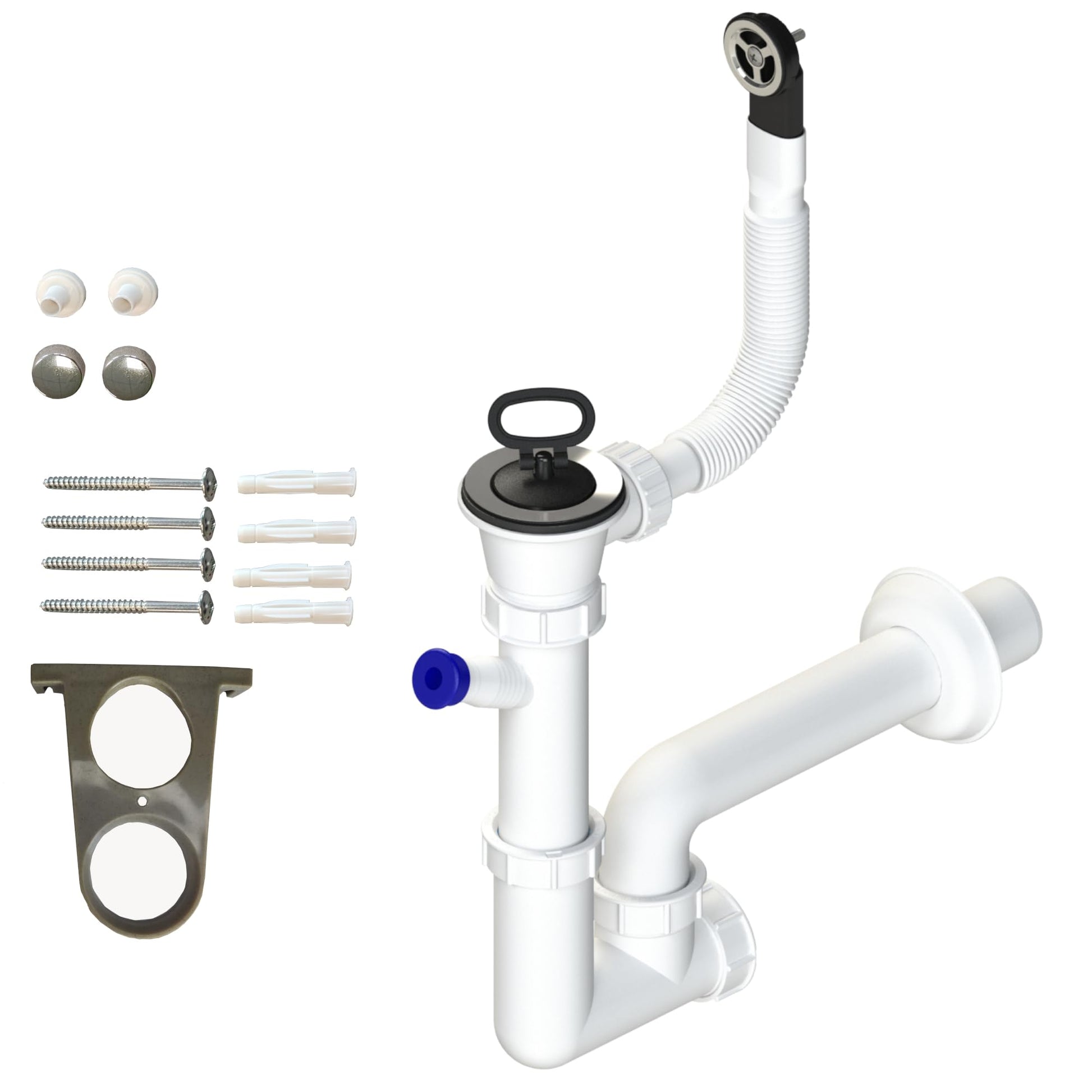 - Komplettes Montageset: Im Lieferumfang sind ein Siphon, das notwendige Montagematerial sowie ein Rohrhalter bereits enthalten.
