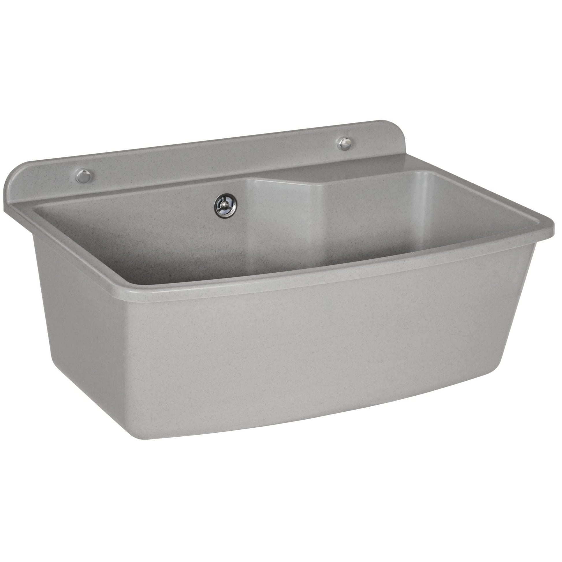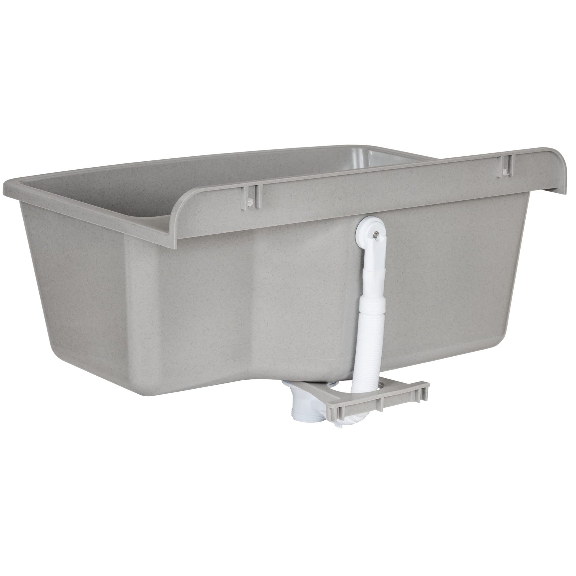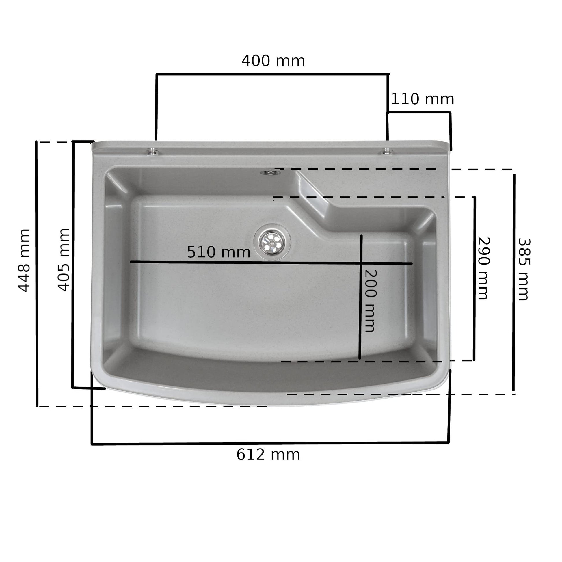 Kunststoff Ausgussbecken 61cm - Grau Granit Wandmontage mit Siphon