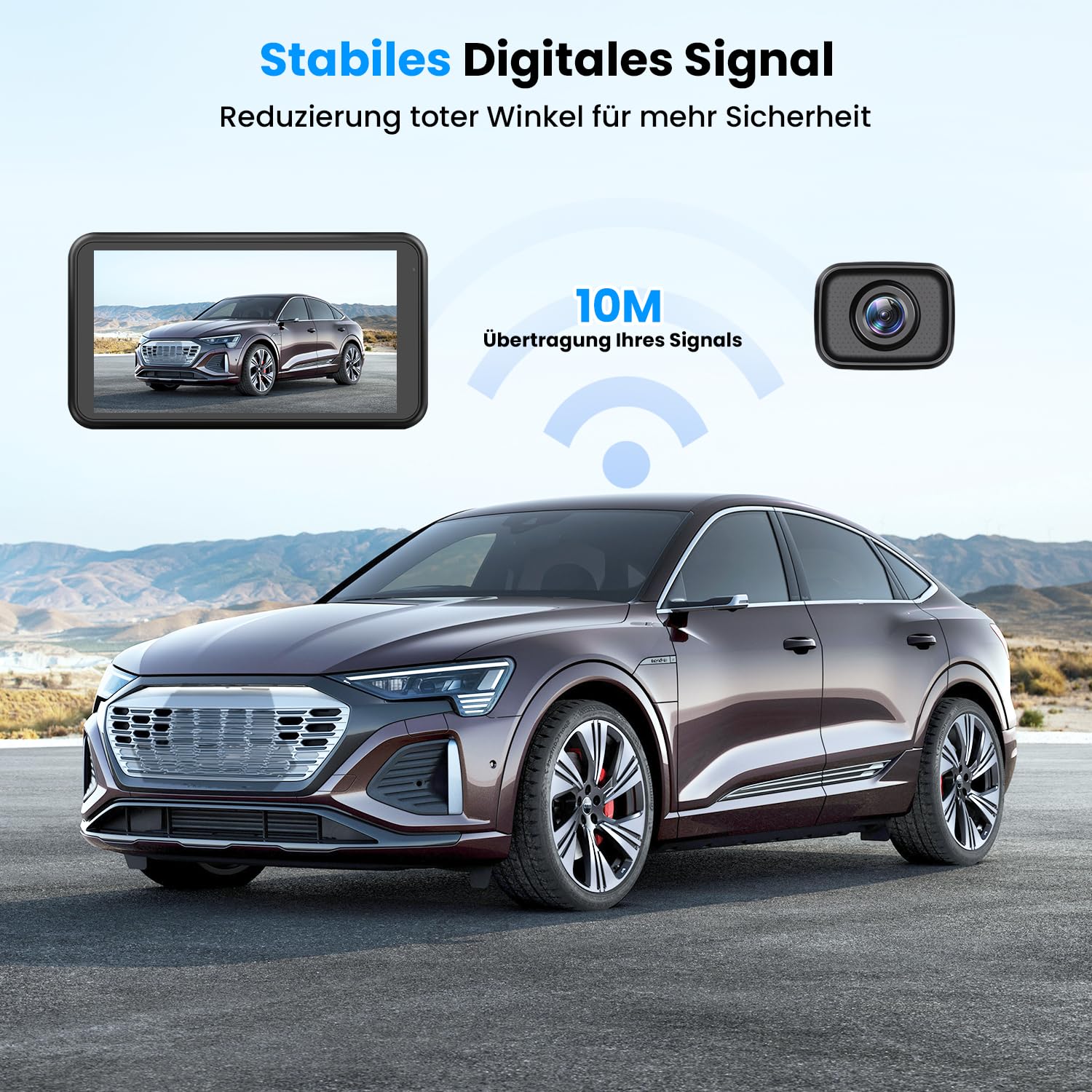 Zuverlässige Leistung für jedes Fahrzeug: Dank des stabilen digitalen Funksignals erhalten Sie ein Echtzeitbild ohne Störungen. Das System eignet sich hervorragend für eine Vielzahl von Fahrzeugen wie Autos, Lieferwagen, LKWs, SUVs, Wohnmobile und Anhänger.