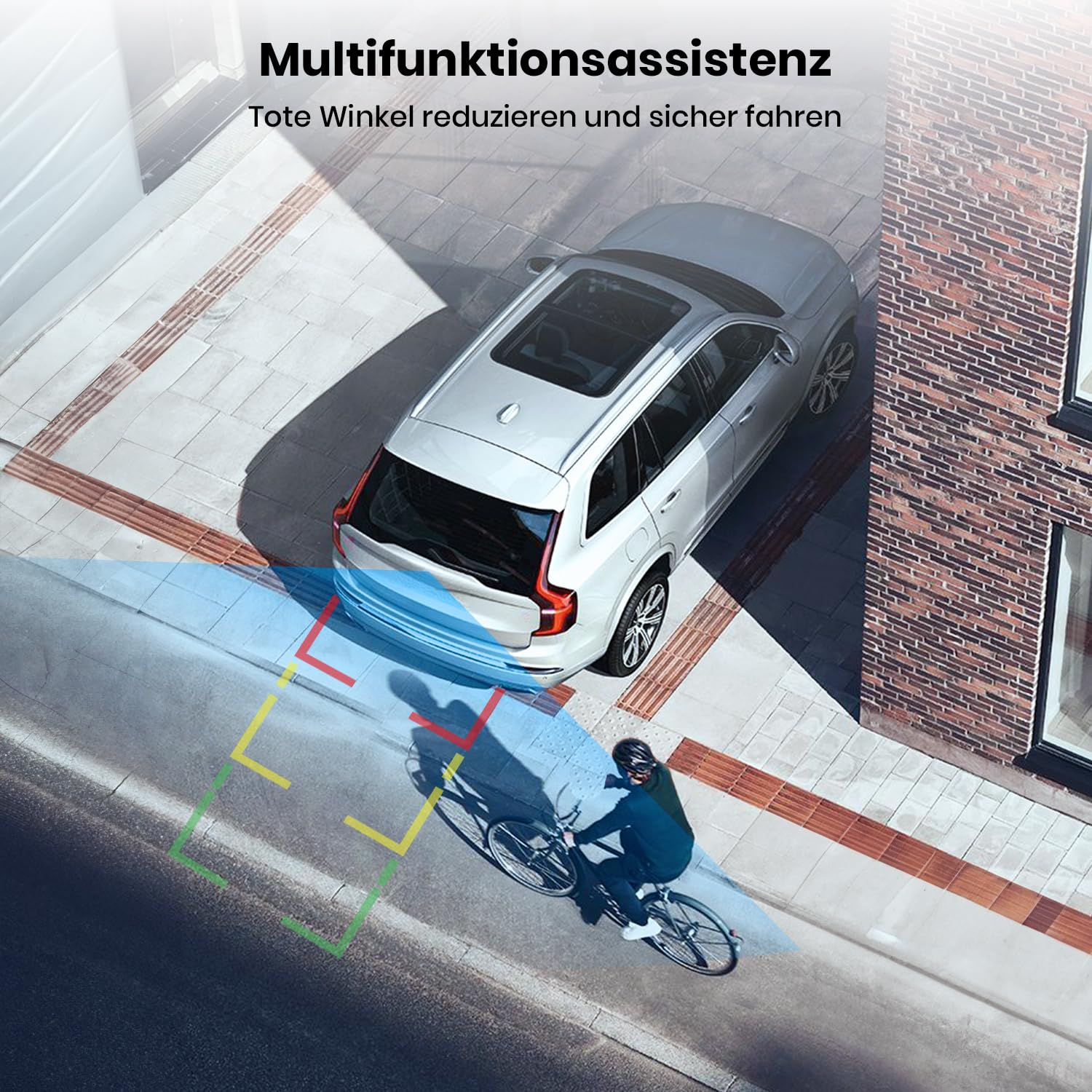 - Erweiterbares System: Unterstützt bis zu zwei Kameras, sodass Sie zusätzlich eine Front- oder Seitenkamera anschliessen können (zweite Kamera separat erhältlich).