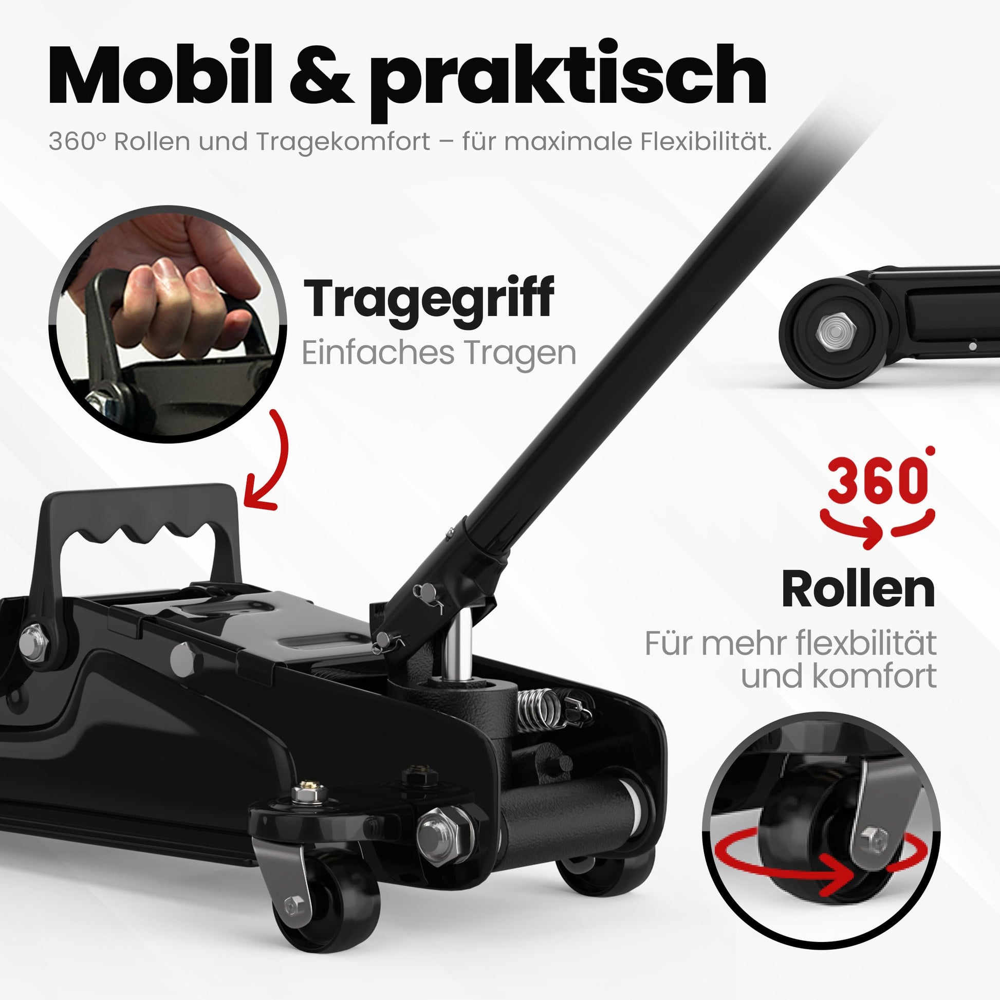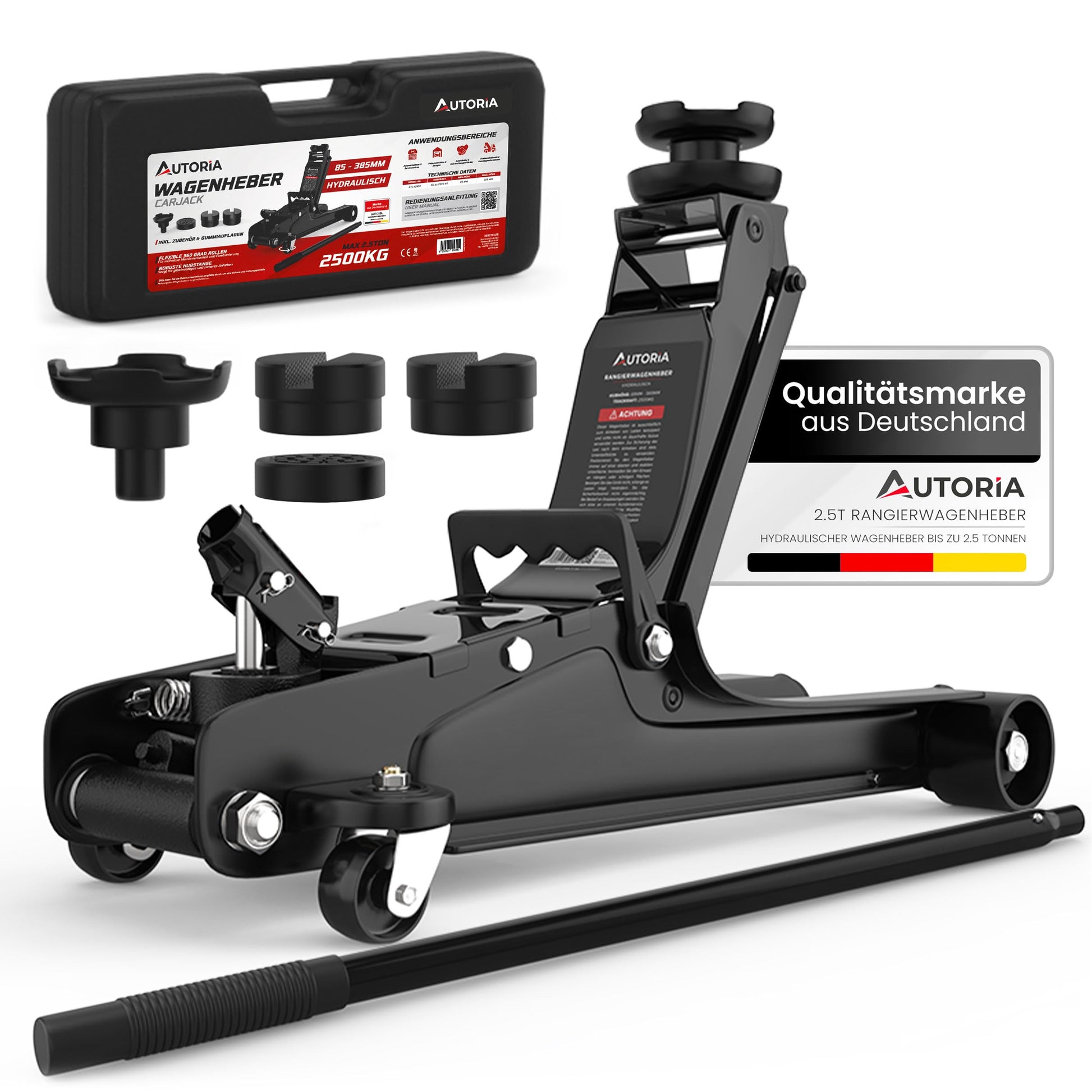 Der hydraulische Rangierwagenheber von AUTORIA ist ein zuverlässiger und leistungsstarker Helfer für alle Arbeiten an Ihrem Fahrzeug, von der einfachen Wartung bis zum saisonalen Reifenwechsel.