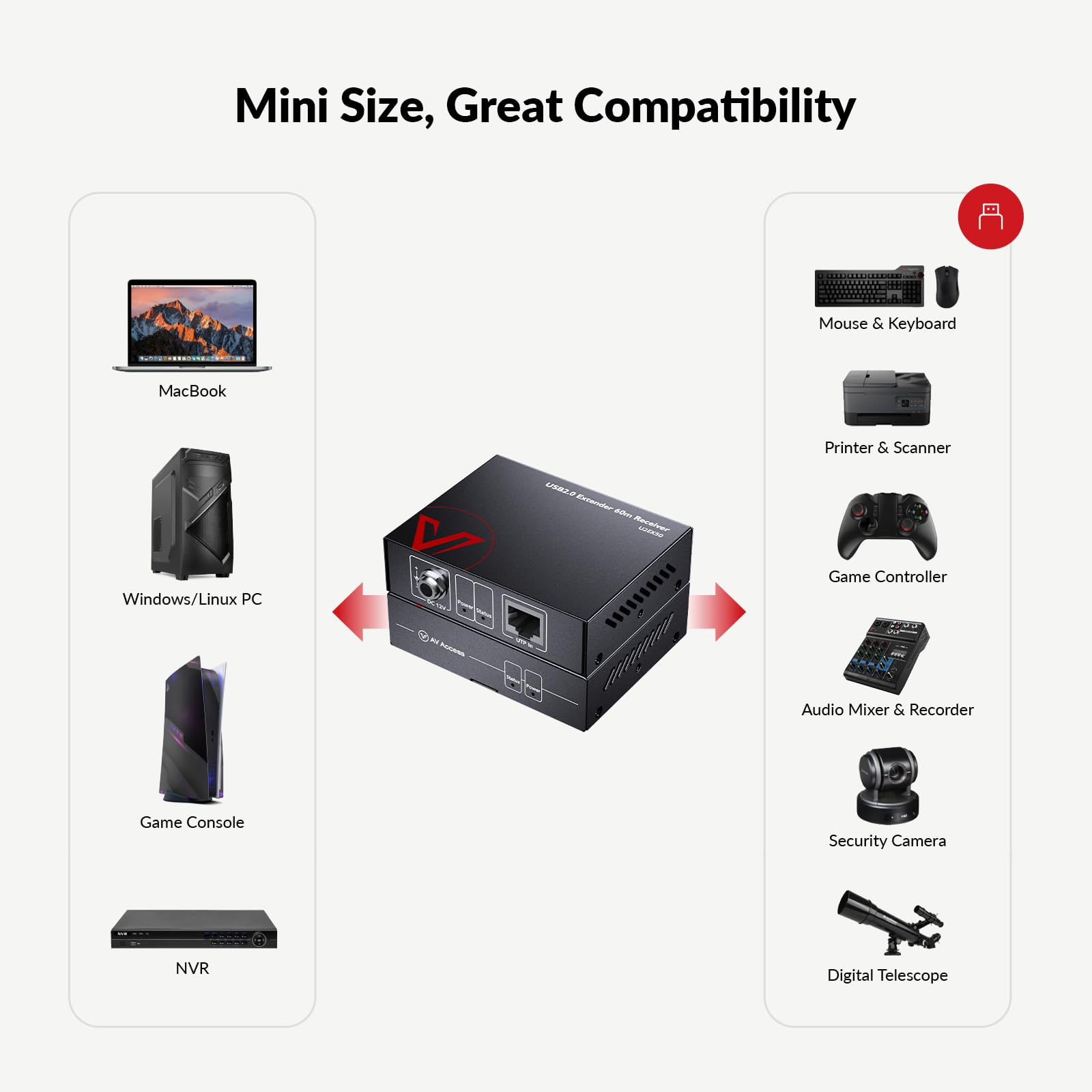 - Grosse Reichweite: Überträgt High-Speed USB 2.0 Signale (bis zu 480 MBit/s) über eine Distanz von bis zu 60 Metern mittels eines Cat5e/6/6a/7 Kabels.