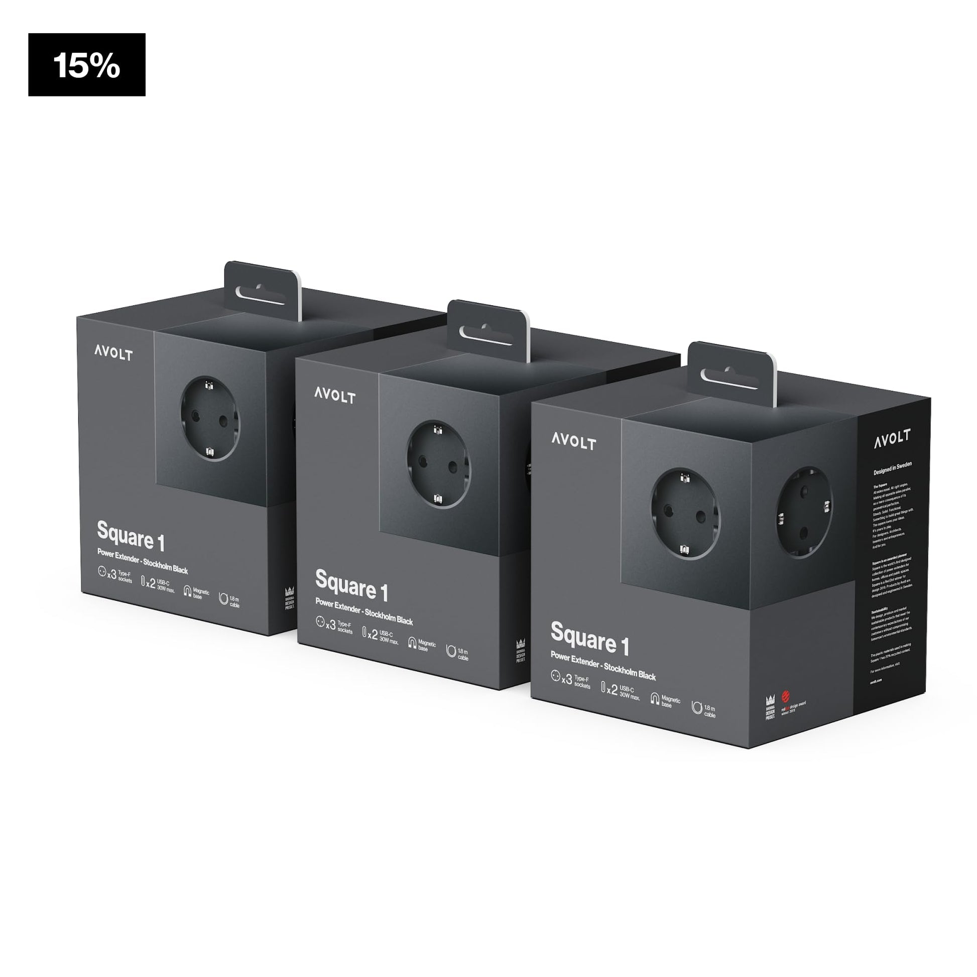 Avolt Square 1 Steckdosenwürfel USB-C - Stockholm Black 1.8m