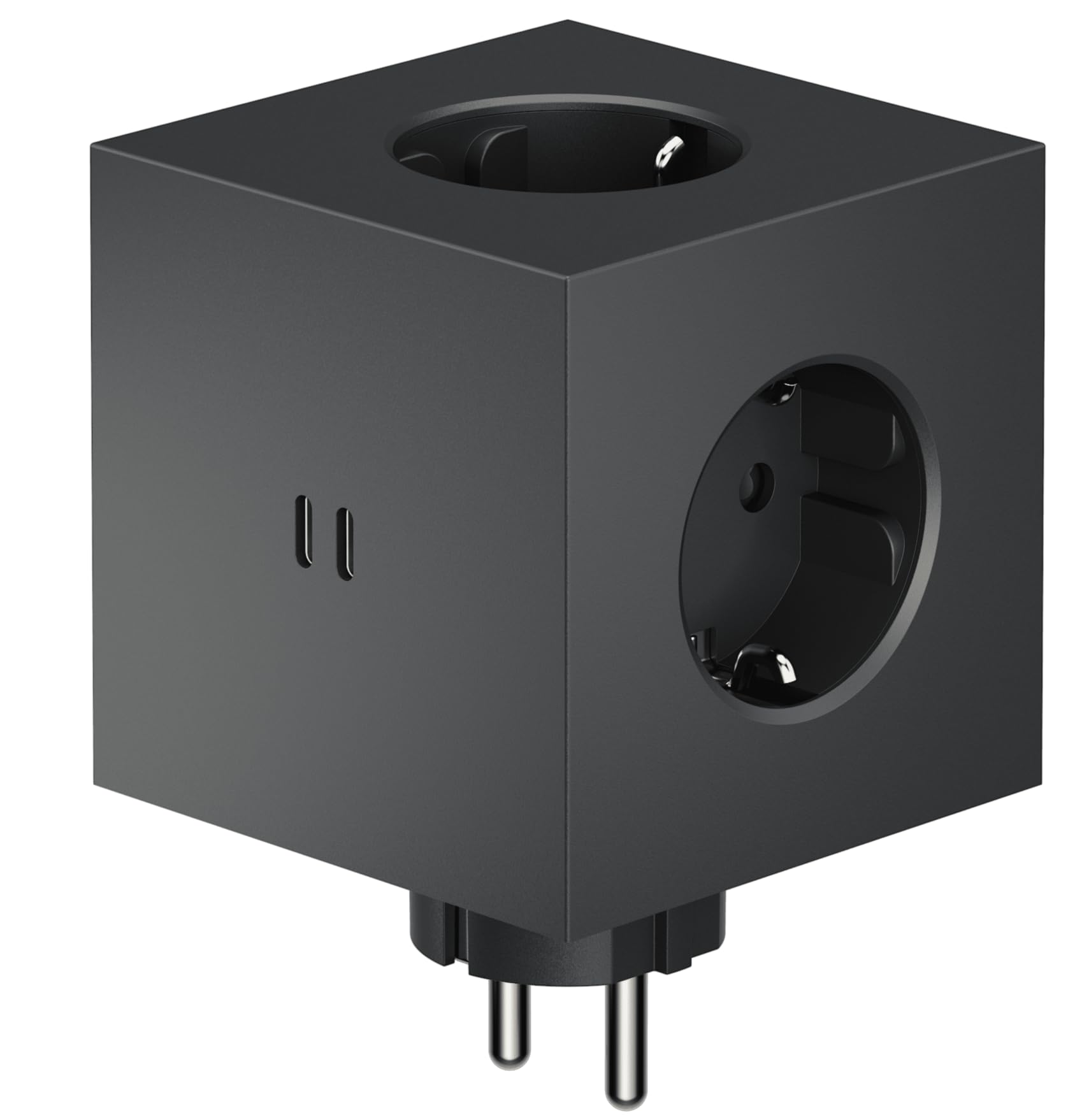 Der Steckdosenwürfel bietet vielseitige Anschlussoptionen für bis zu fünf Geräte gleichzeitig: Er verfügt über drei klassische Steckdosen (Typ F) und zwei leistungsstarke USB-C-Anschlüsse für maximale Konnektivität.
