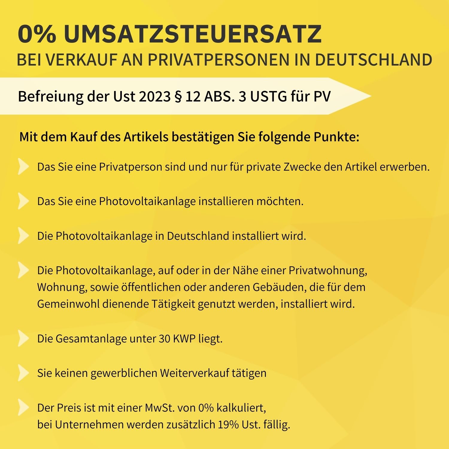 - Variable Ausrichtung: Richten Sie Ihre Solarmodule flexibel in verschiedene Himmelsrichtungen aus, um die Sonneneinstrahlung über den ganzen Tag hinweg maximal zu nutzen.